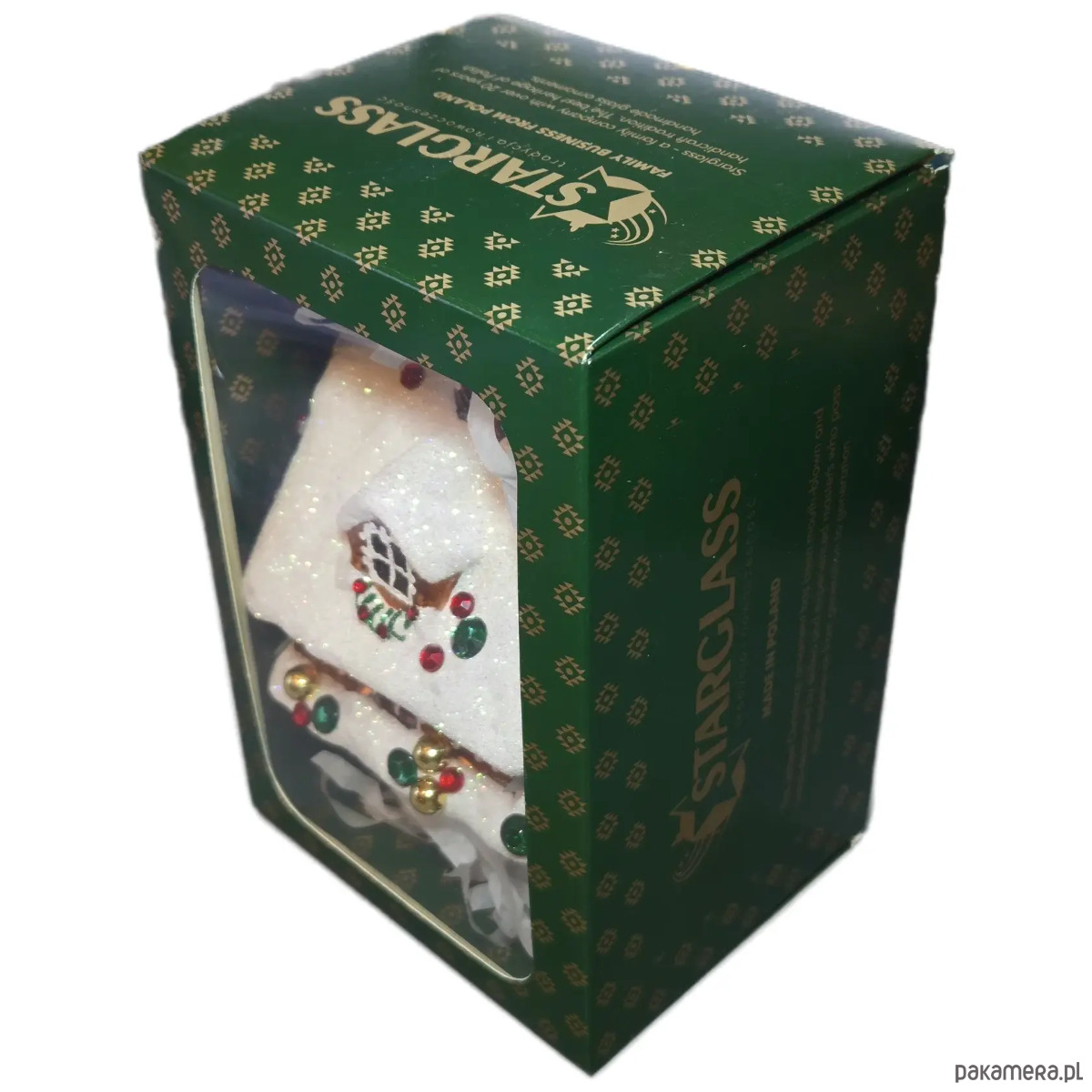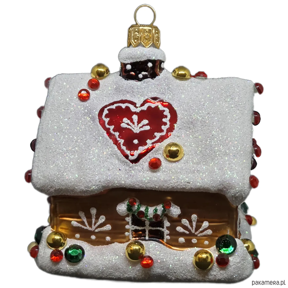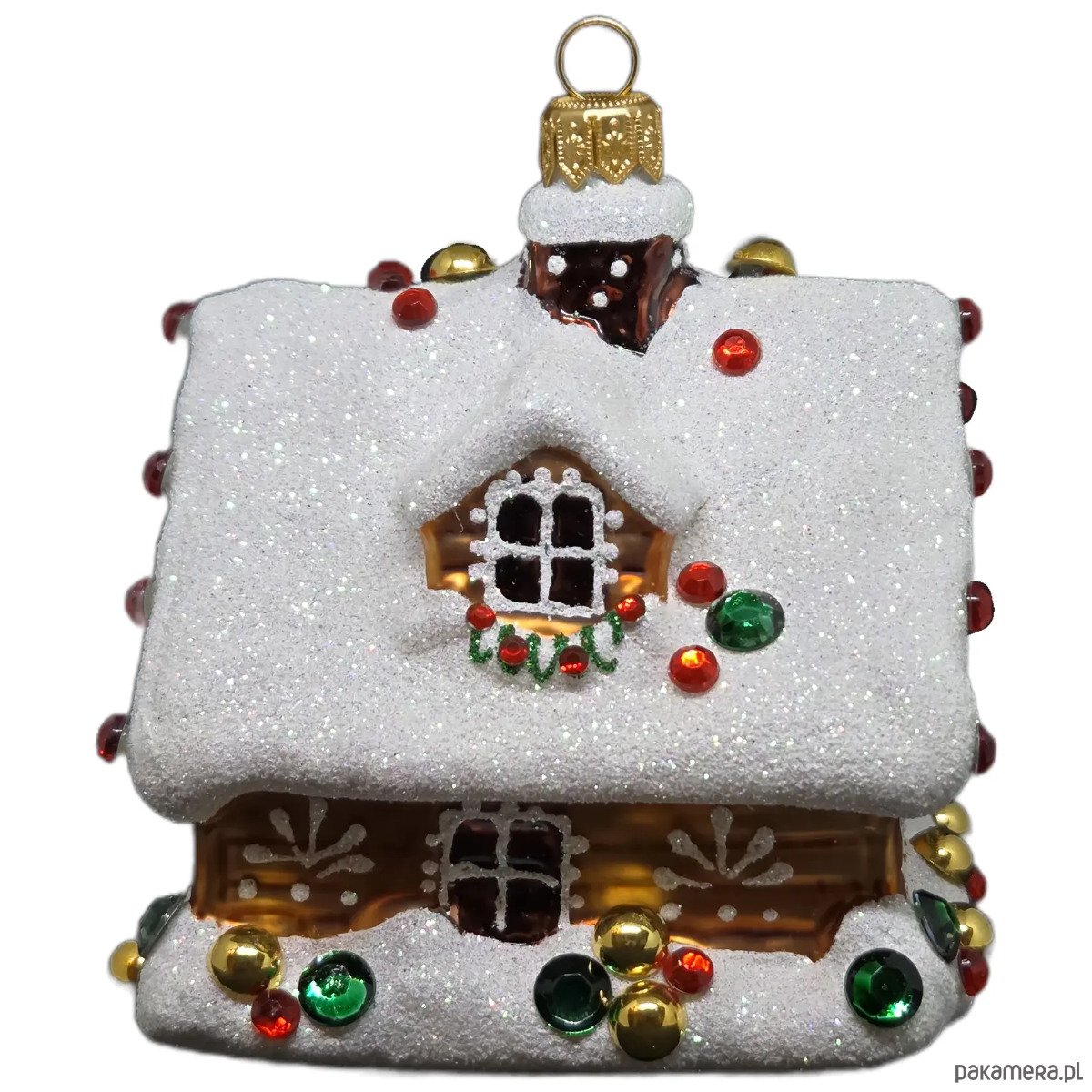 Ręcznie malowana szklana bombka świąteczny domek z kryształkami