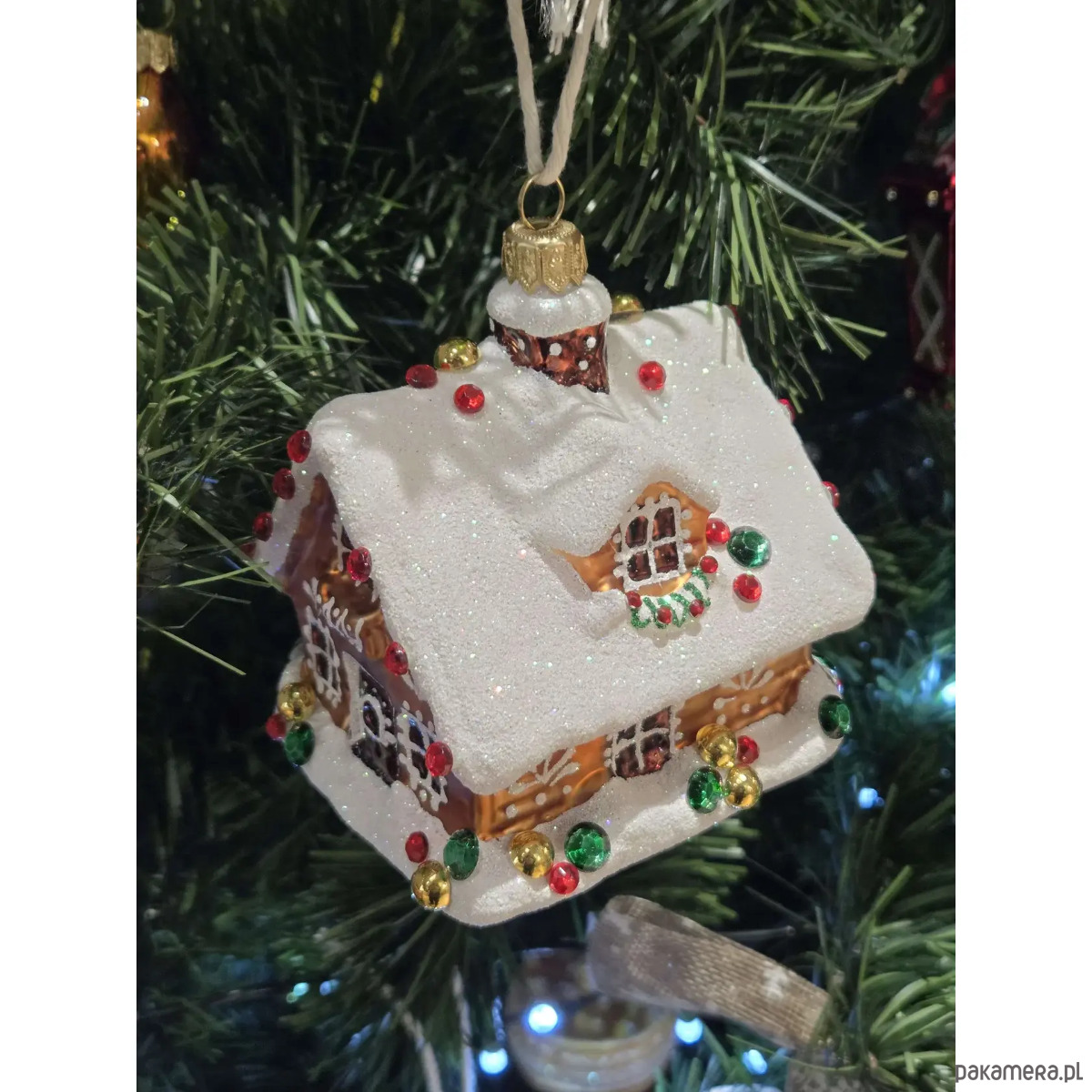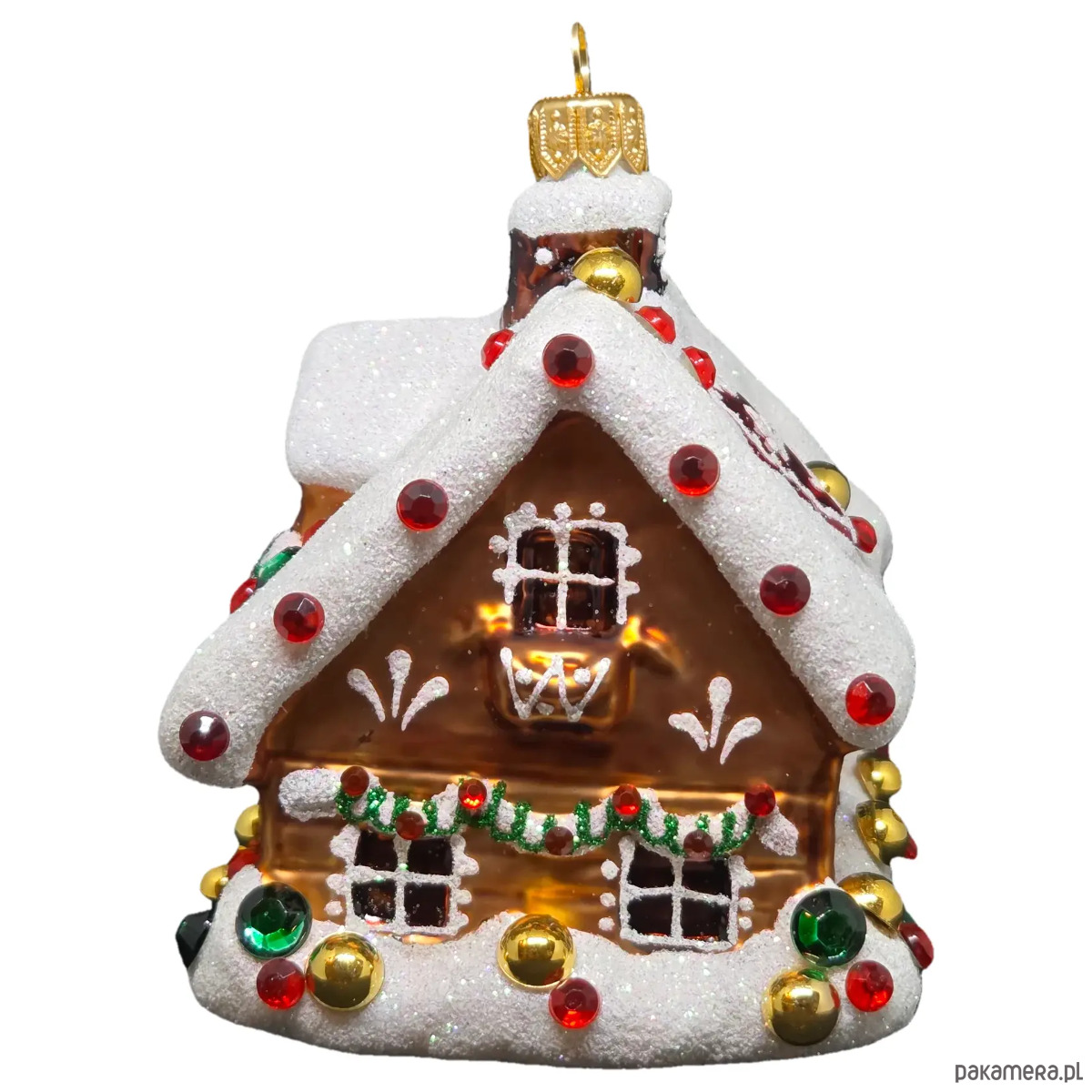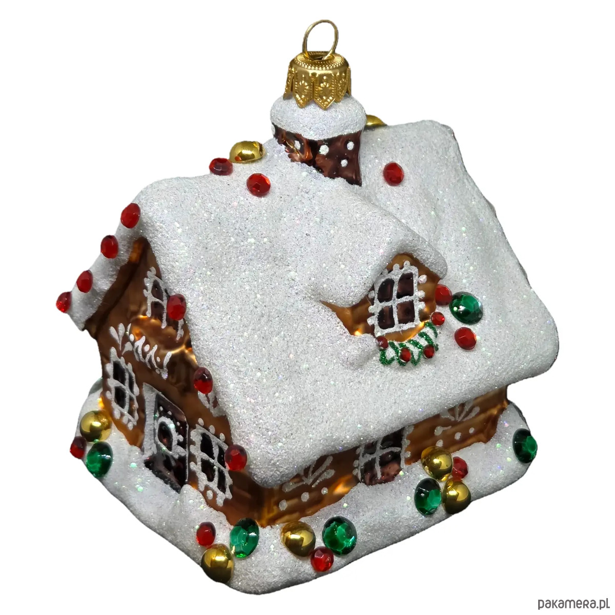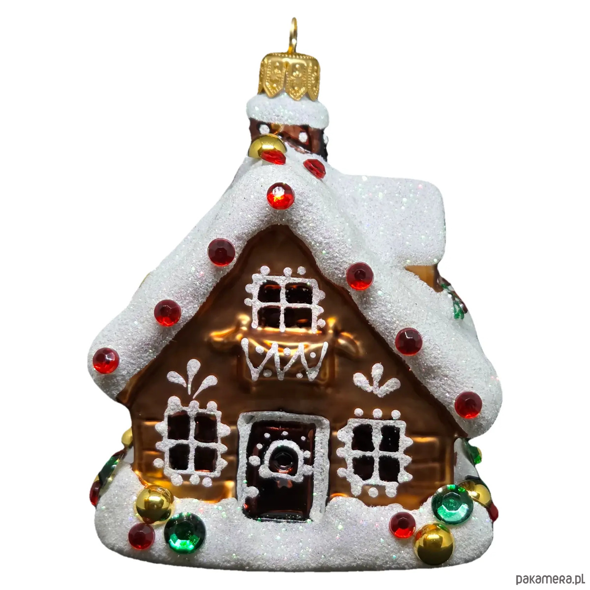 Ręcznie malowana szklana bombka świąteczny domek z kryształkami