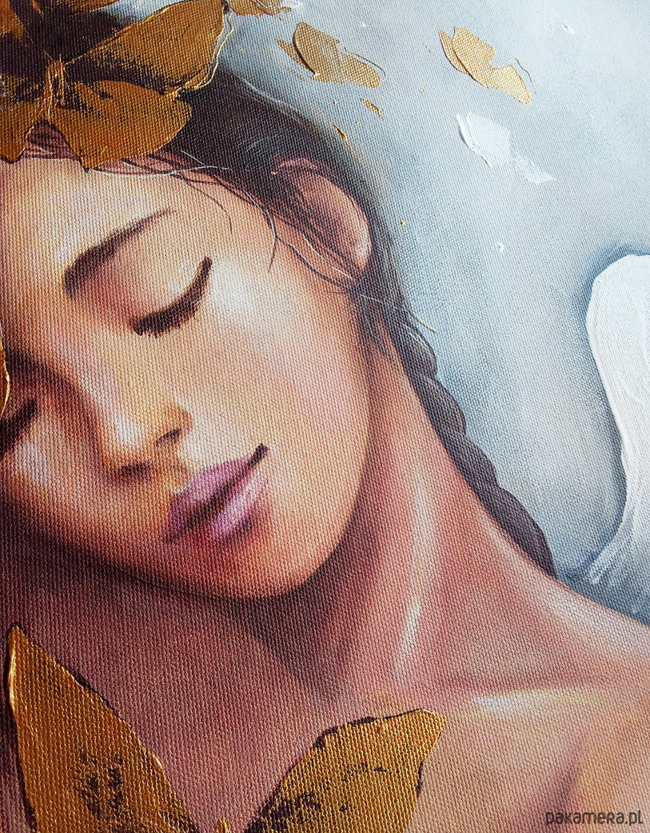Obraz ręcznie malowany, o wyraźnej fakturze farby, naciągnięty na drewniane krosno i zabezpieczony werniksem. Wymiary: 50x70 cm.