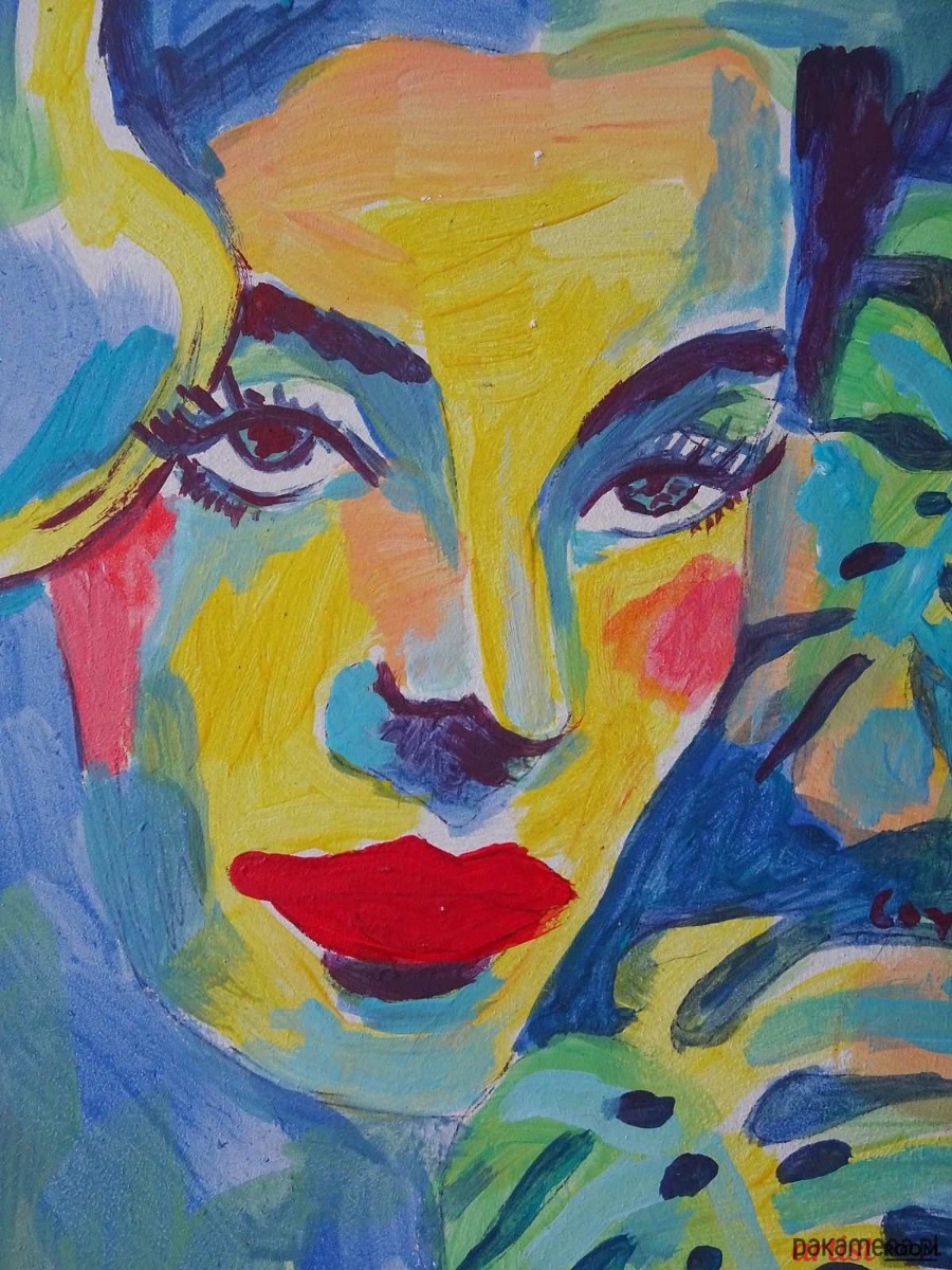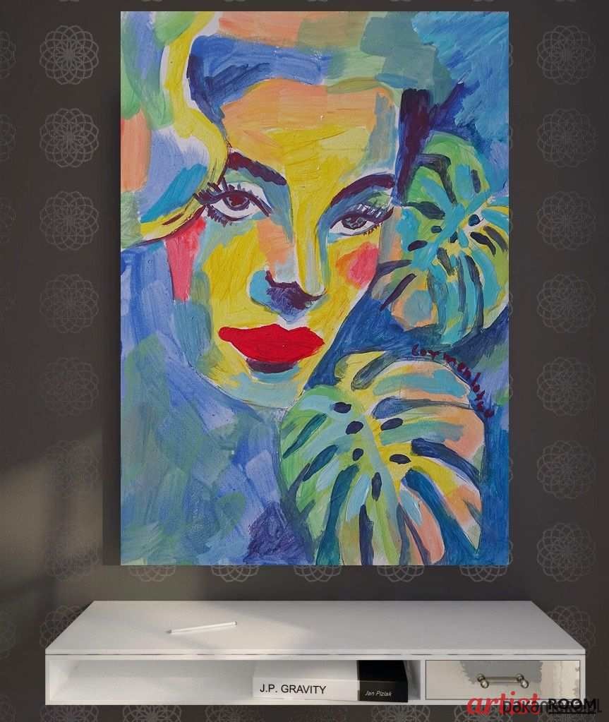 Ręcznie malowany kolorowy obraz do salonu lauren bacall