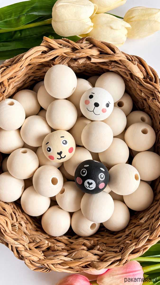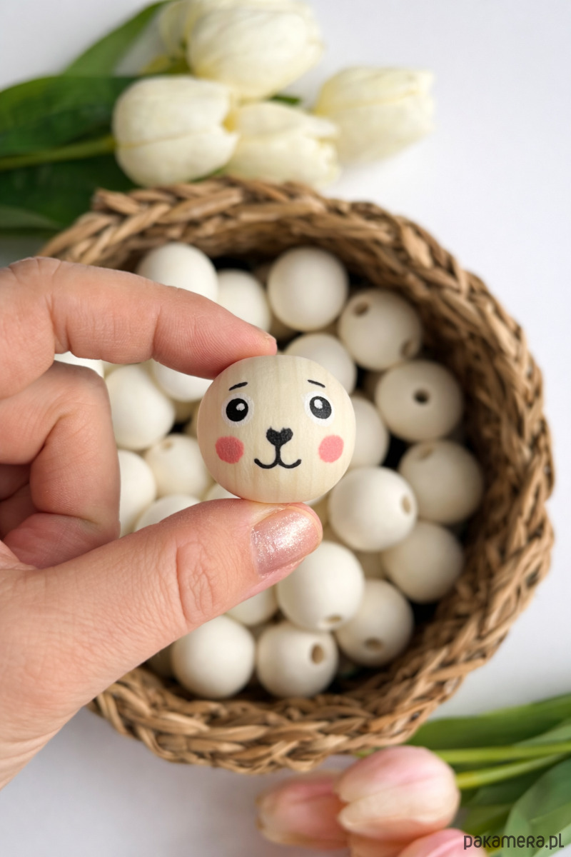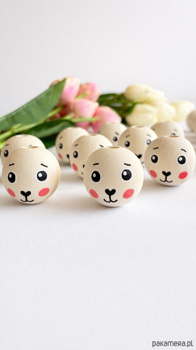 Ręcznie malowany koralik baranek biały 3 cm do makramy i rękodzieła 1 szt.
