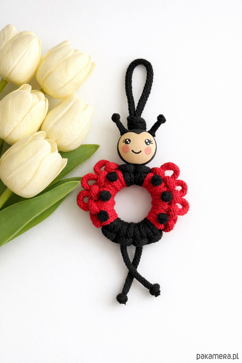 Ręcznie malowany koralik biedronka 3 cm do makramy i rękodzieła 1 szt.