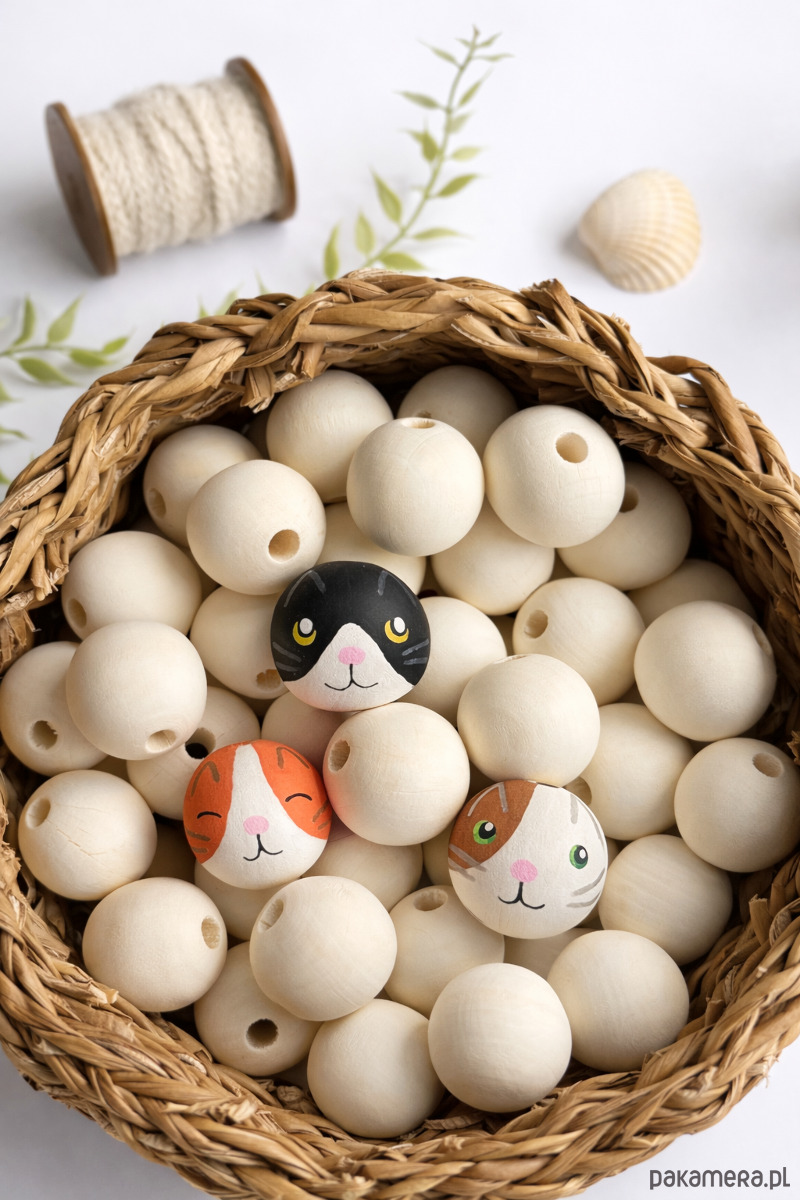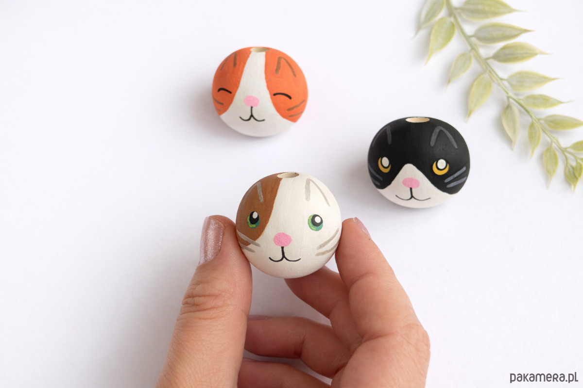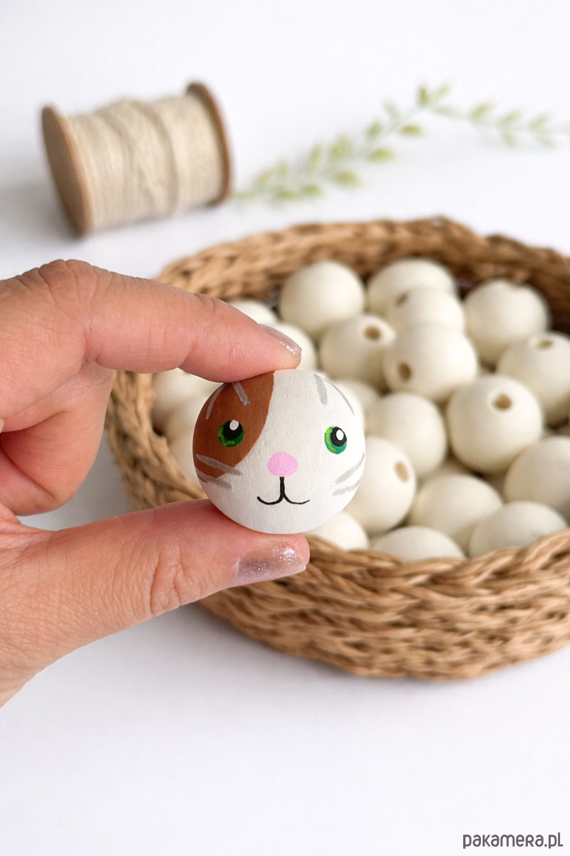 Ręcznie malowany koralik kotek to uroczy dodatek do projektów handmade.