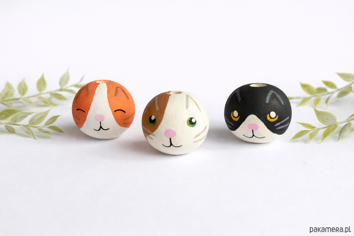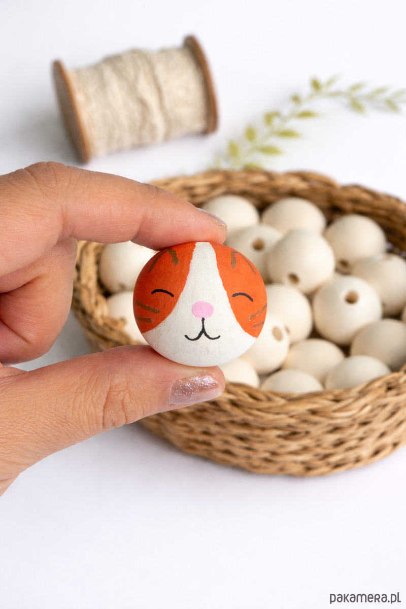 Ręcznie malowany koralik kotek to uroczy dodatek do projektów handmade.