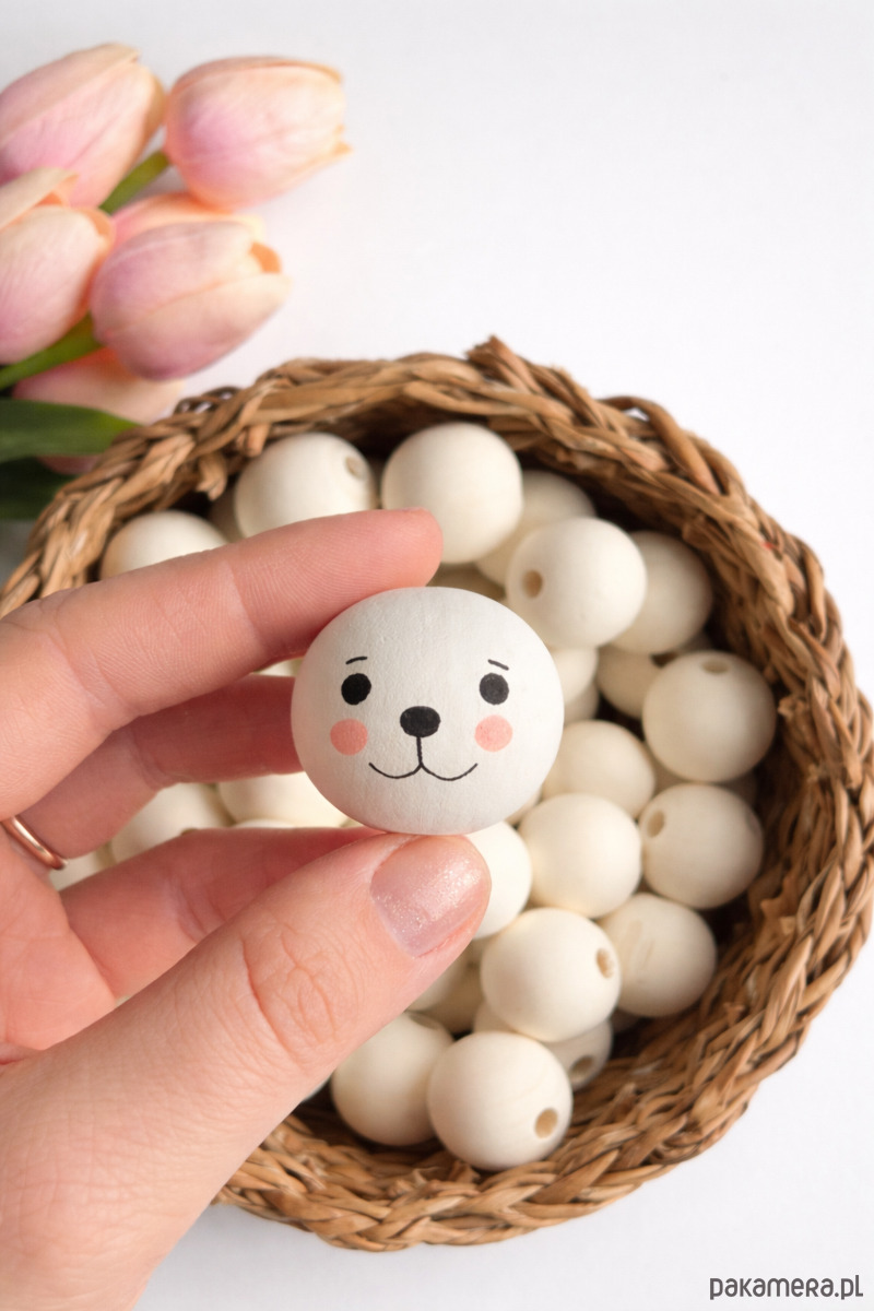 Ręcznie malowany koralik miś to uroczy dodatek do projektów handmade.