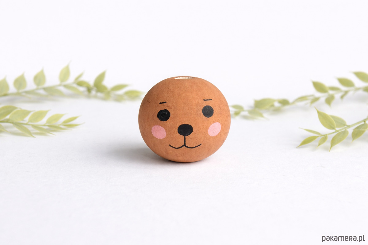 Ręcznie malowany koralik miś brązowy to uroczy dodatek do projektów handmade.
