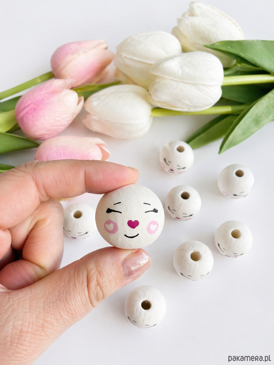 Każdy koralik jest malowany przeze mnie ręcznie akrylami, dzięki czemu każdy egzemplarz jest unikalny i może się delikatnie różnić.
