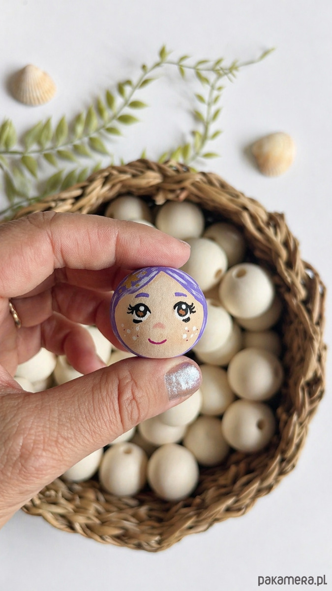 Ręcznie malowany koralik z twarzą syrenki to uroczy dodatek do projektów handmade.