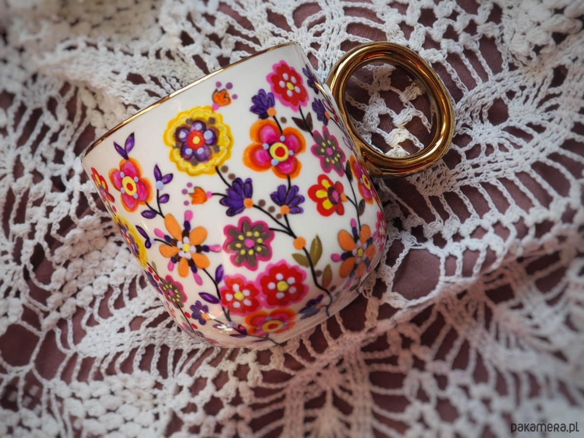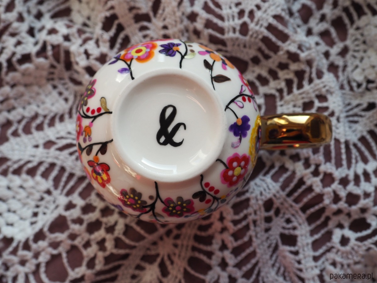 Wzór wykonany został przy użyciu nietoksycznych farb do porcelany, jest wodoodporny - naczynie może być myte ręcznie, bez użycia ostrych narzędzi.