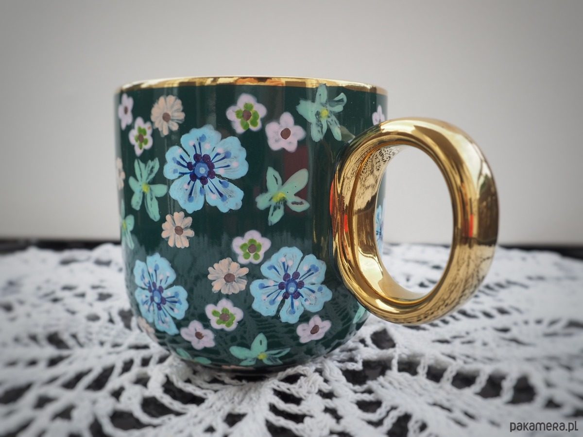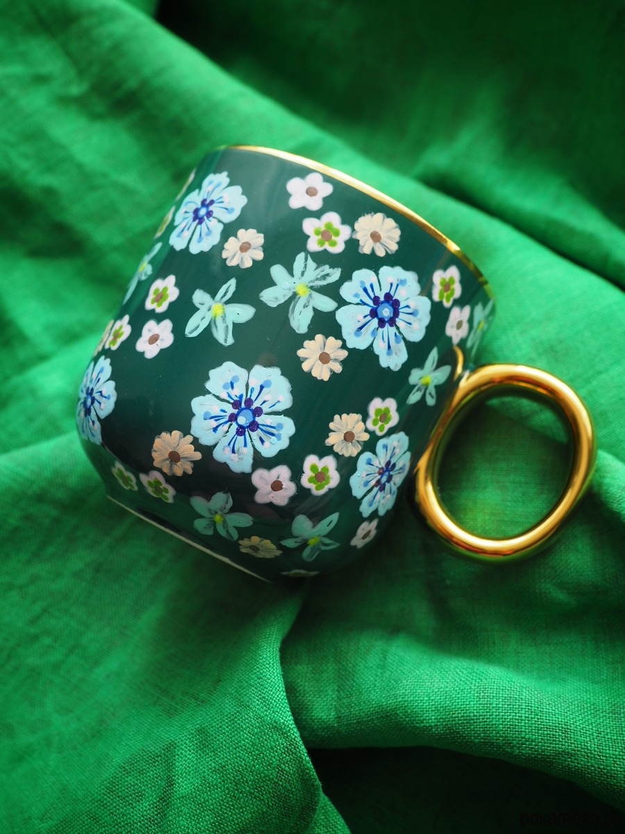 Wzór wykonany został przy użyciu nietoksycznych farb do porcelany, jest wodoodporny - naczynie może być myte ręcznie, bez użycia ostrych narzędzi.