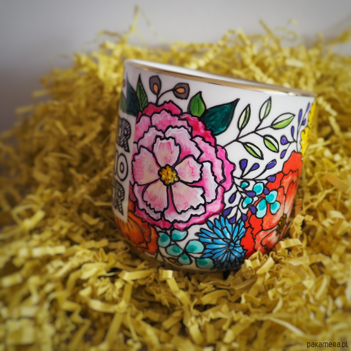Ręcznie malowany kubek w kwiaty MOTHER