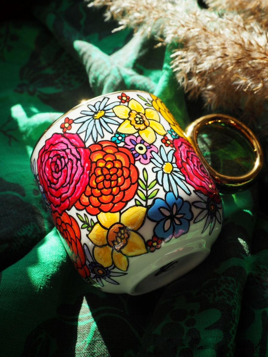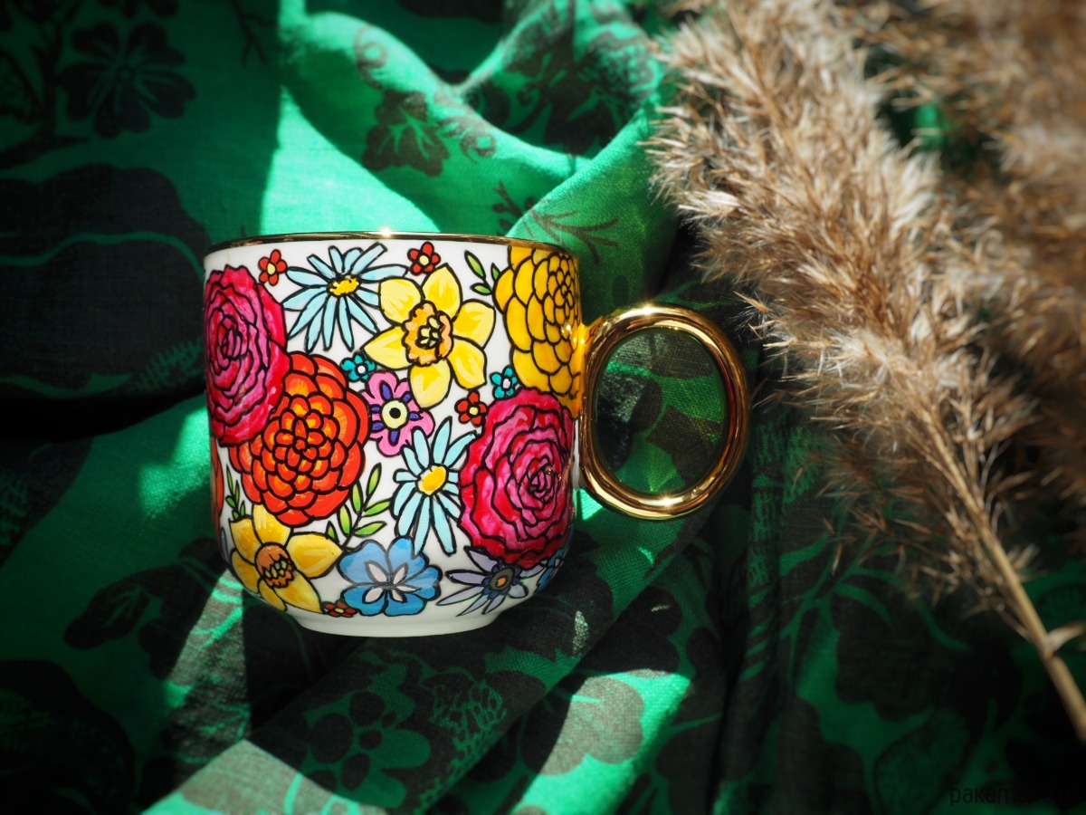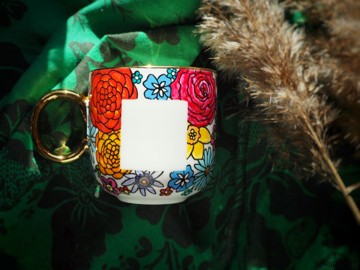 Ręcznie malowany kubek w kwiaty z dowolnie wybraną literą jest uniwersalnym upominkiem, niezobowiązującym, radosnym i ciepłym, odpowiednim dla osoby w każdym wieku. Przy zakupie proszę o podanie litery do wpisania w białym polu.