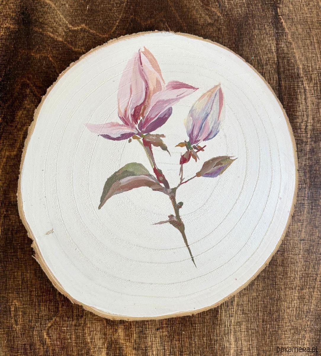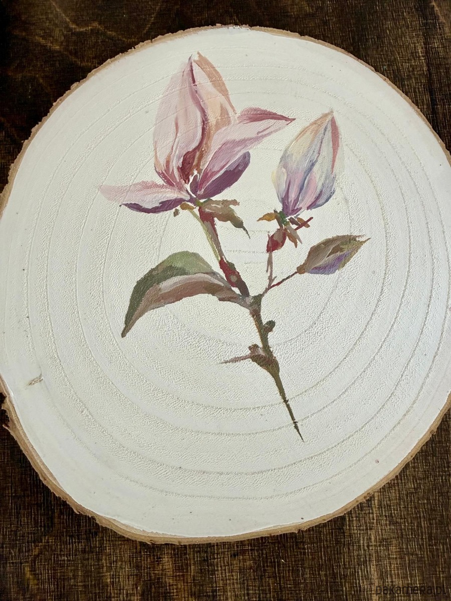 Ręcznie malowany obrazek na plastrze drewna "Magnolie"