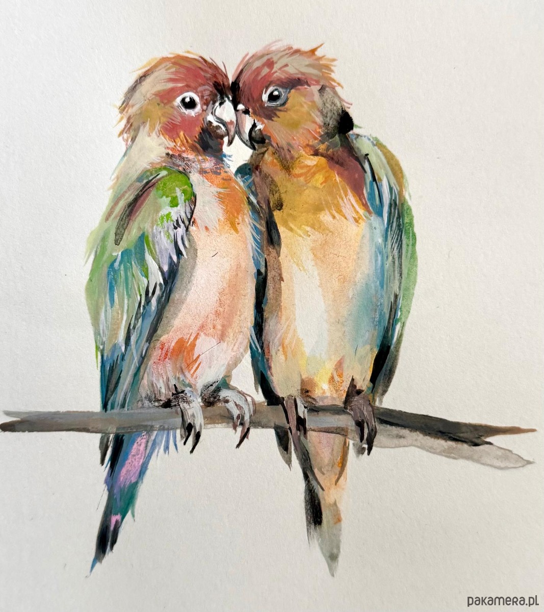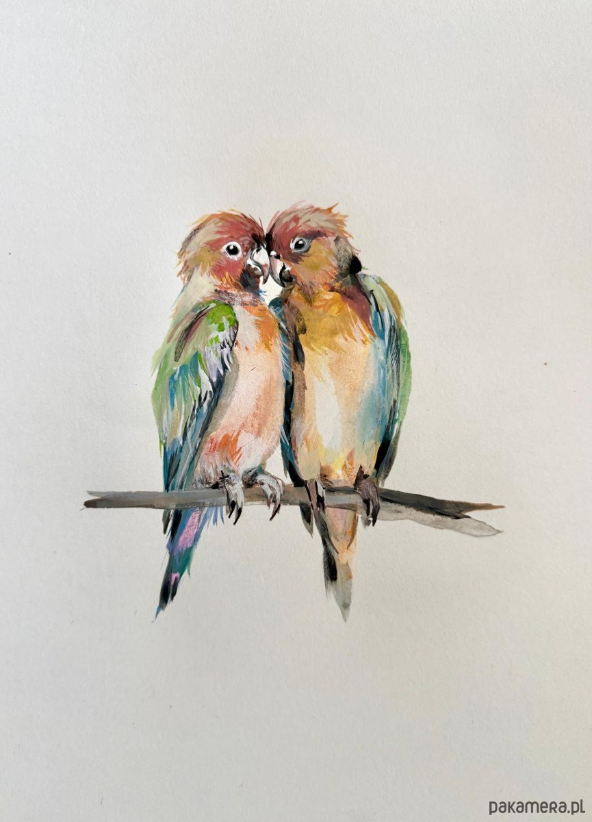 Ręcznie malowany obrazek "Papużki nierozłączki"