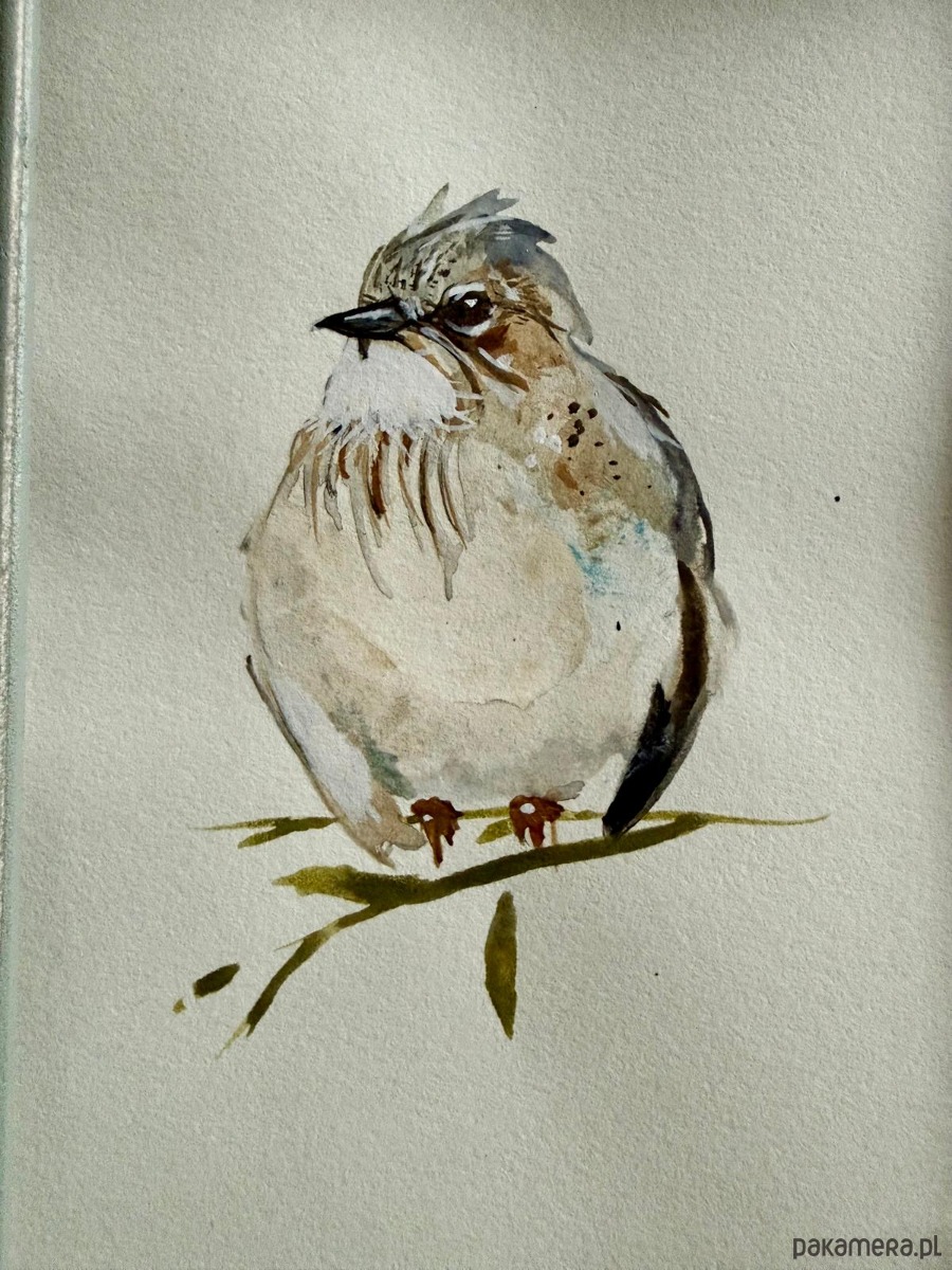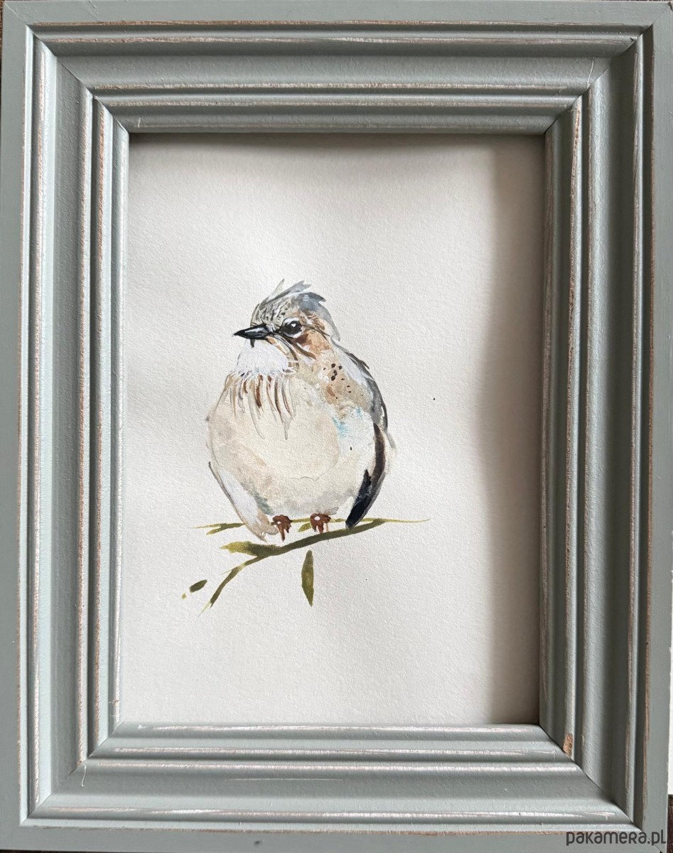 Ręcznie malowany obrazek "Ptak na gałęzi"