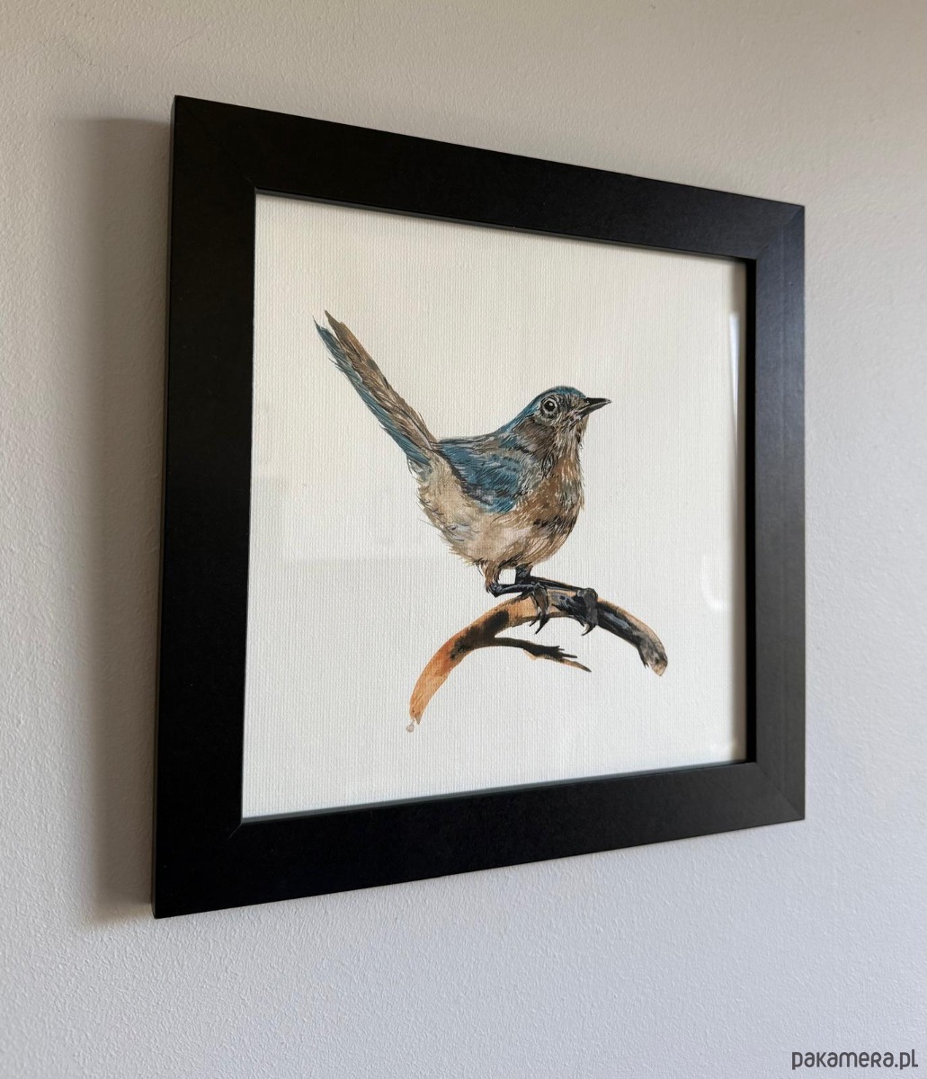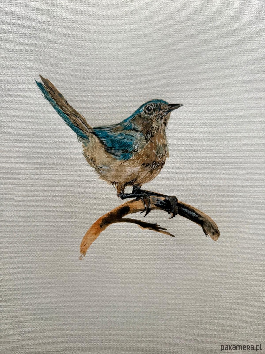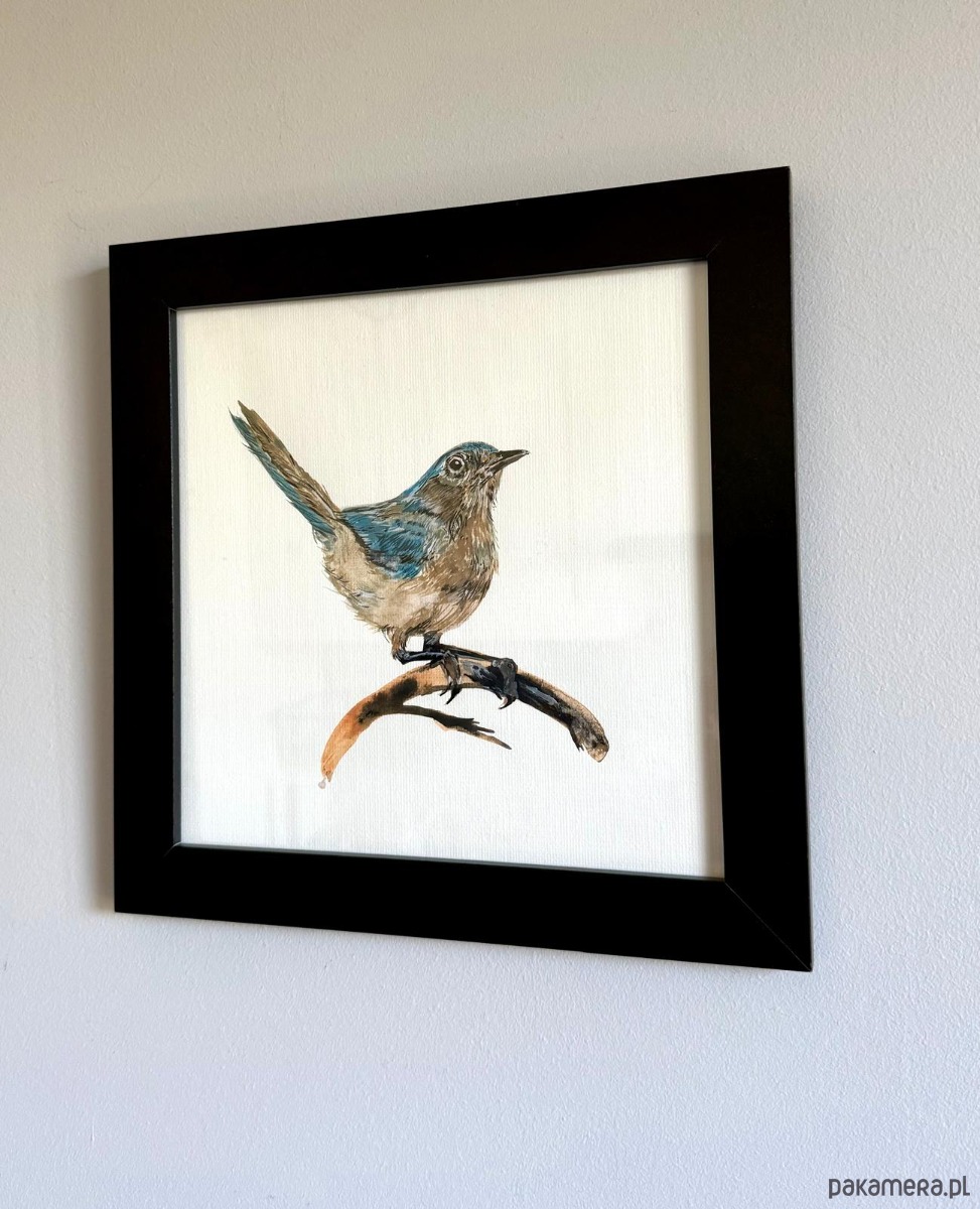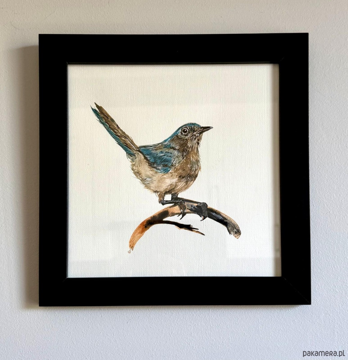 Ręcznie malowany obrazek "Ptak na gałęzi"