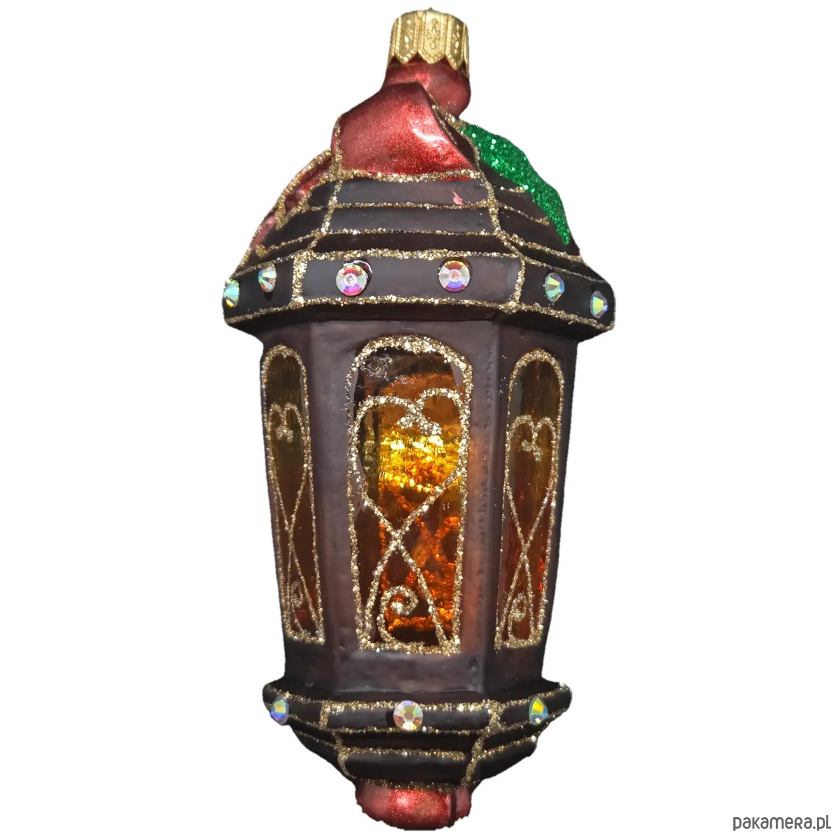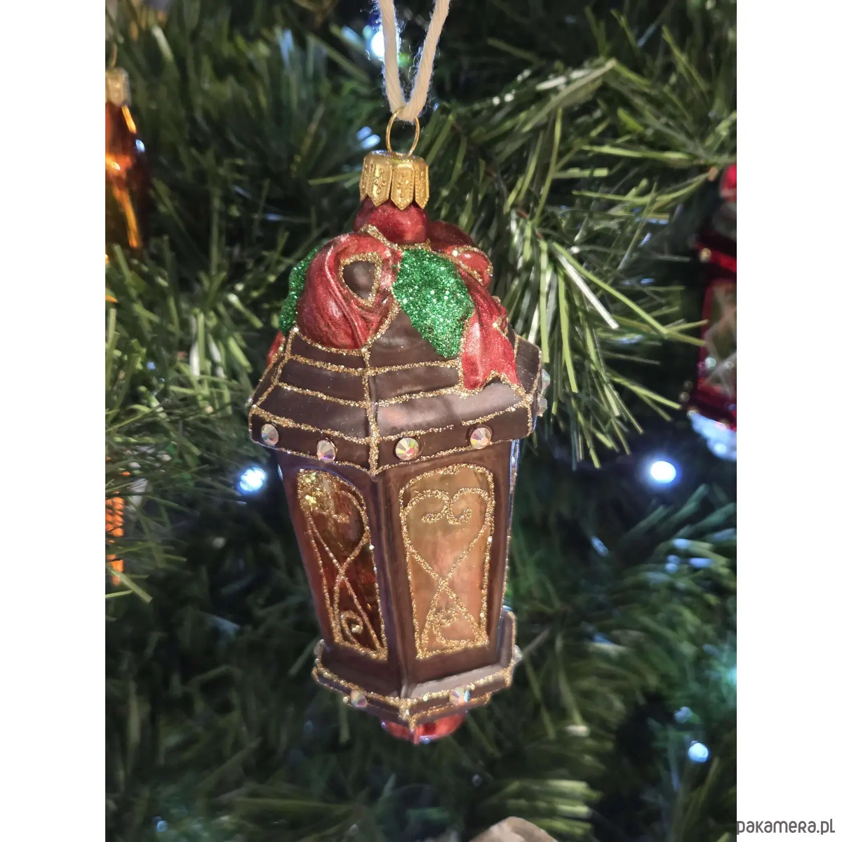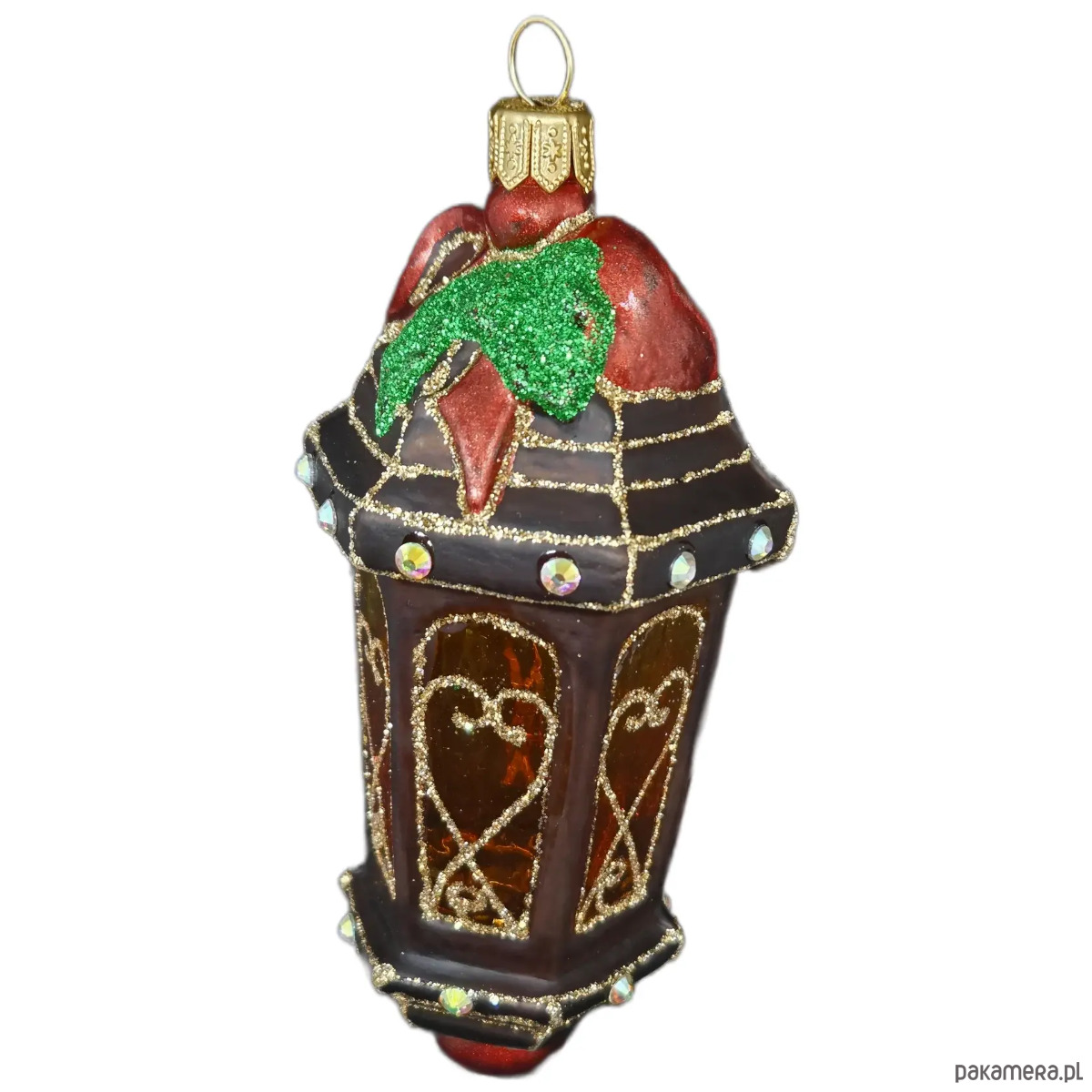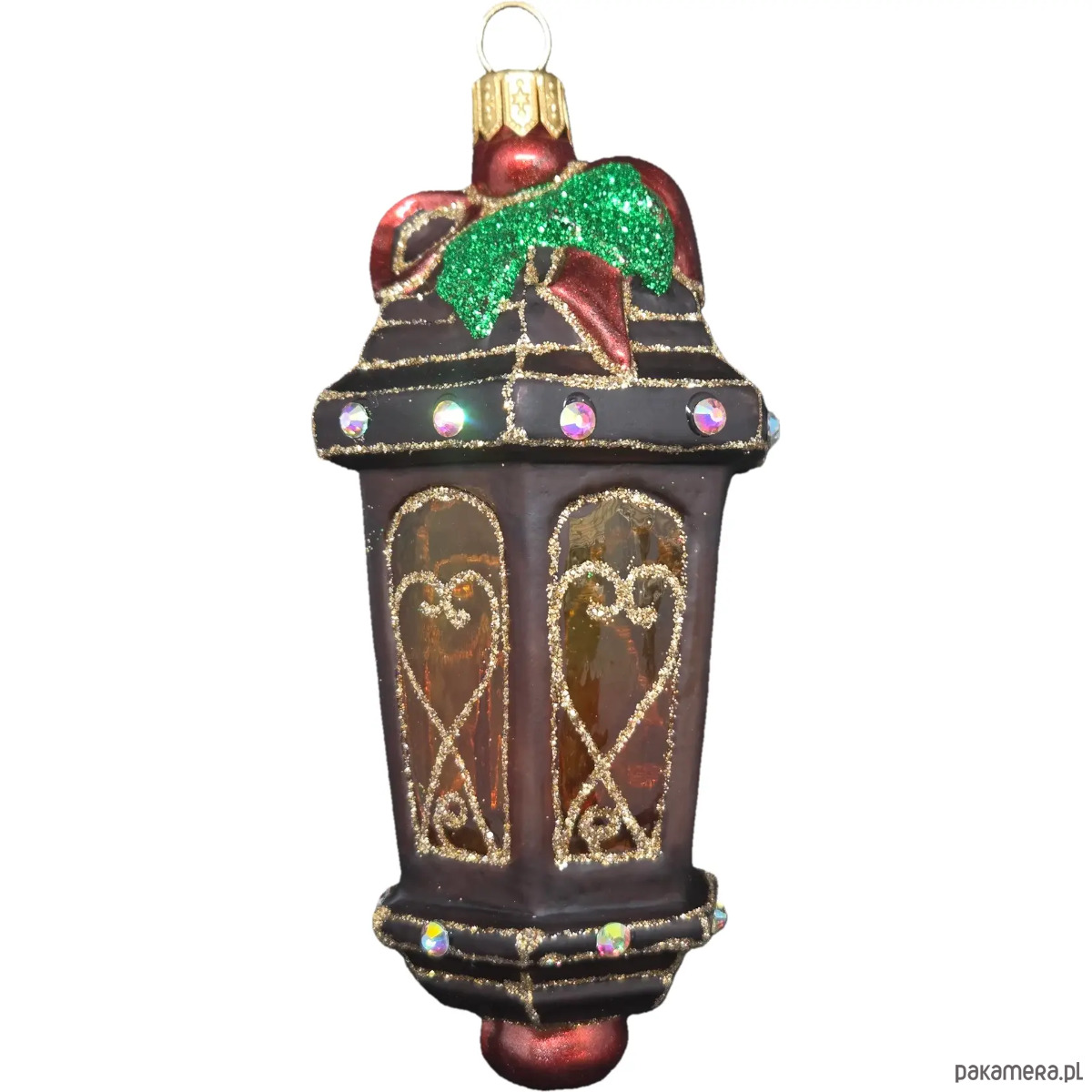 Ręcznie malowana szklana bombka brązowy lampion ze złotymi zdobieniami