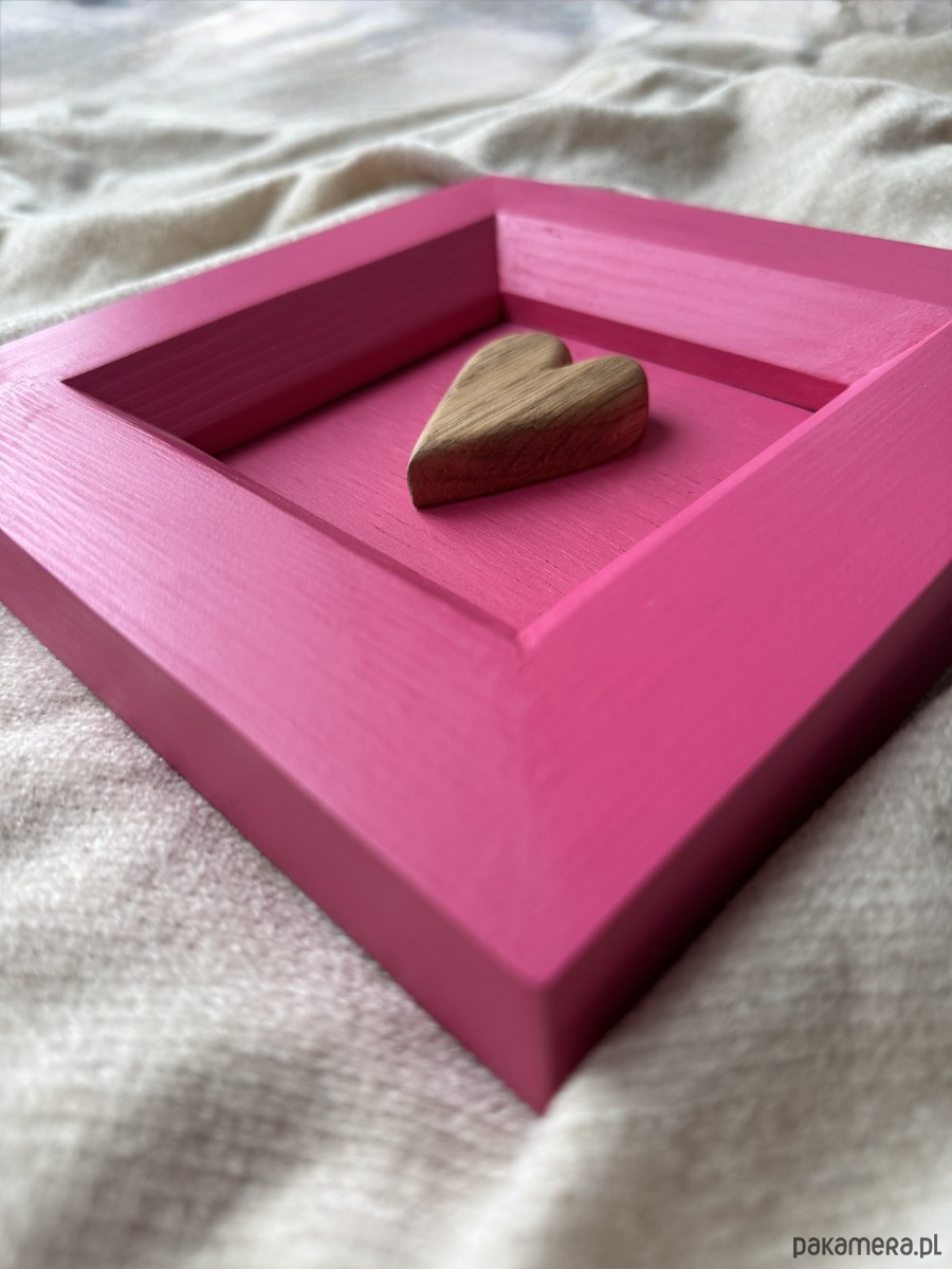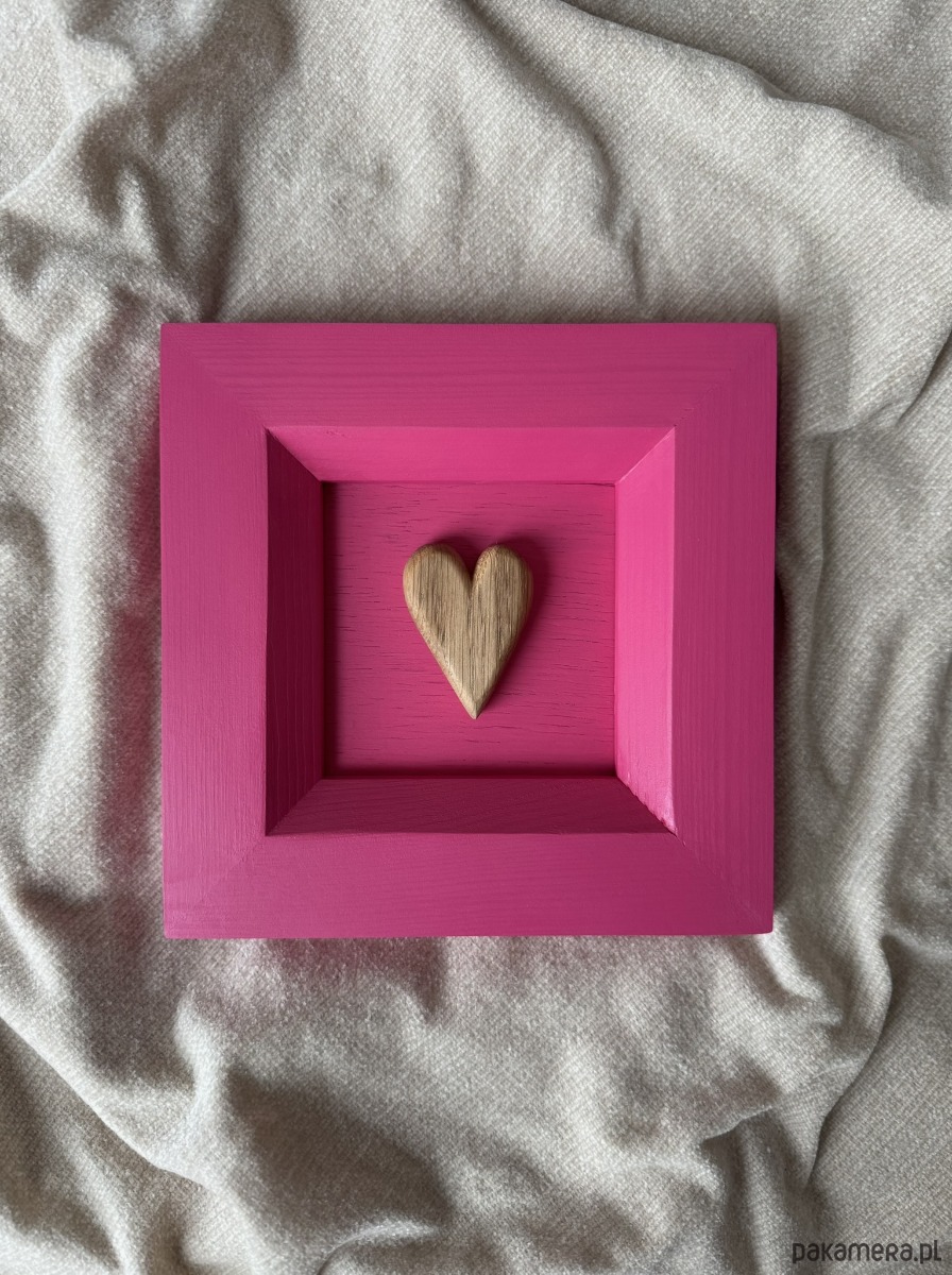 Wyjątkowa, minimalistyczna dekoracja do wnętrza. W 100% wykonana ręcznie, począwszy od ramki, po struganie serduszka.