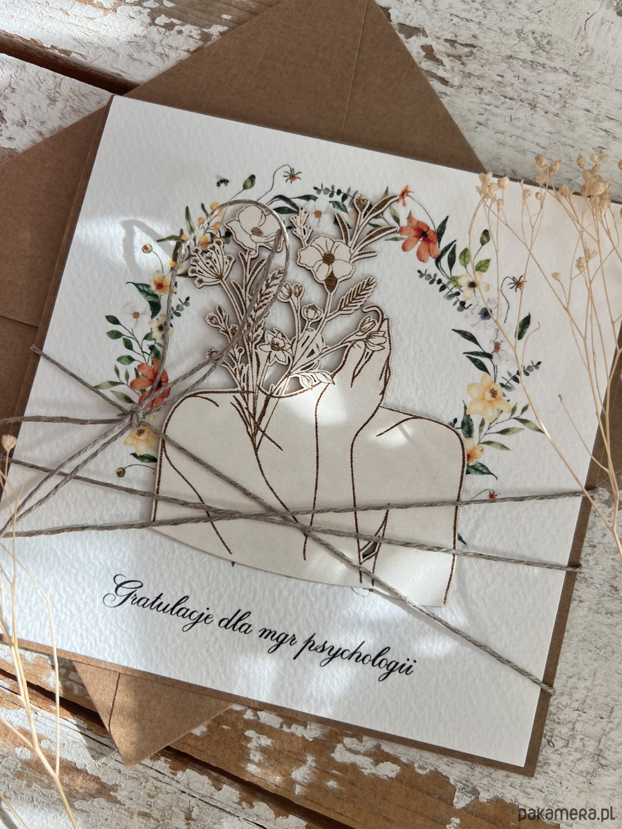 Ręcznie robiona kartka gratulacje z okazji ukończenia studiów psychologicznyc