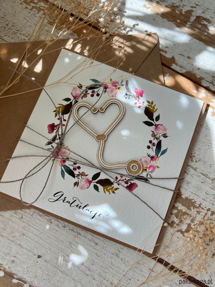 Ręcznie robiona kartka gratulacje z okazji uzyskania absolutorium lekarz