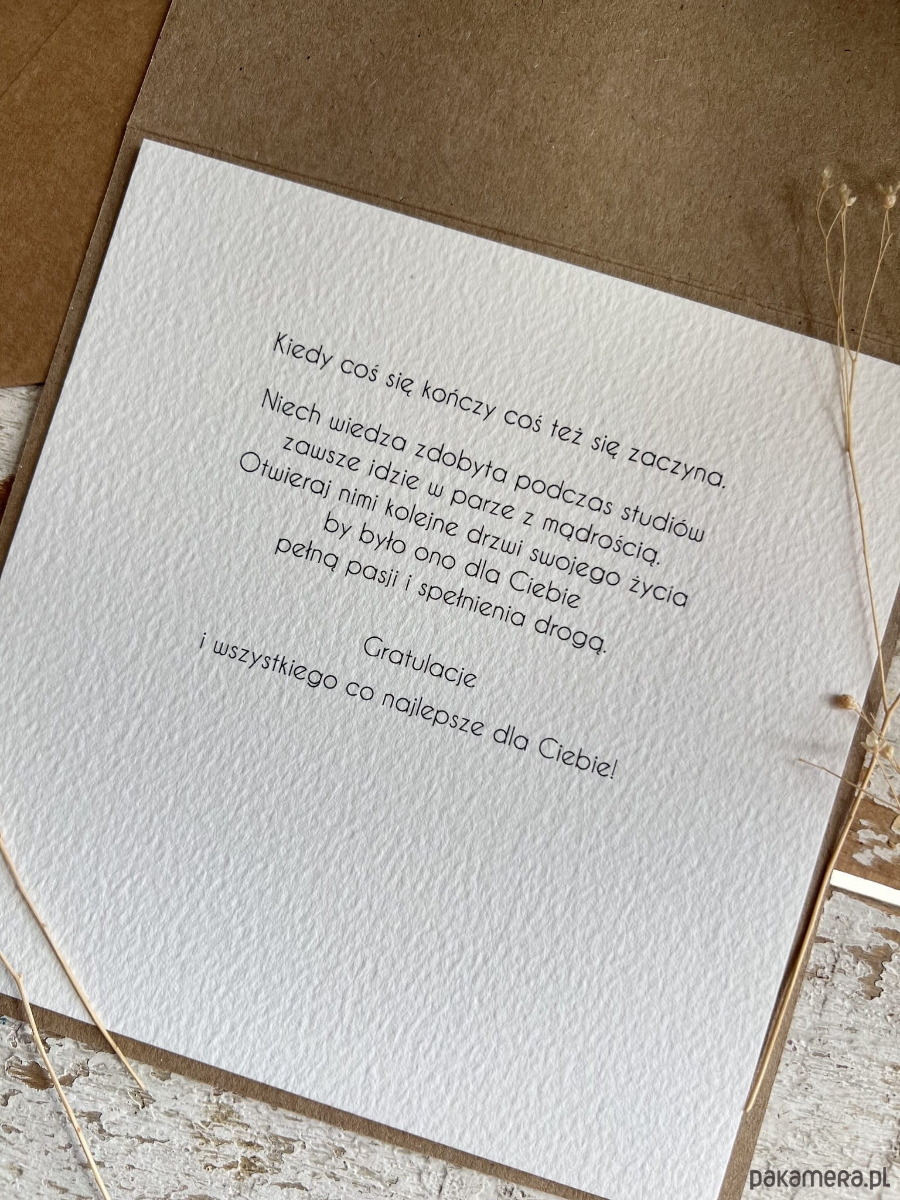 Ręcznie robiona kartka gratulacje z okazji uzyskania absolutorium obrony pracy licencjackiej, magisterskiej, doktorskiej - zakończenia studiów na życzenia