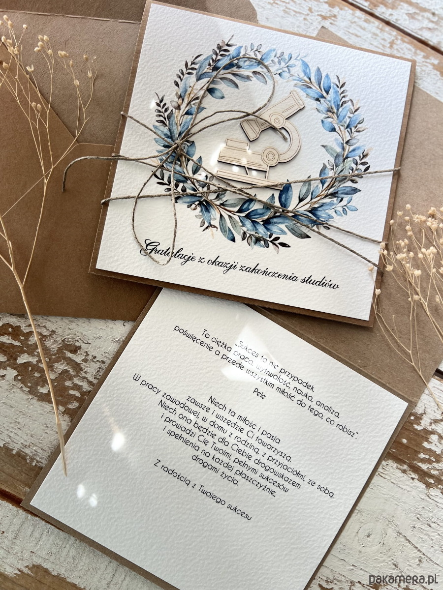 Ręcznie robiona kartka gratulacje z okazji zakończenia studiów życzenia