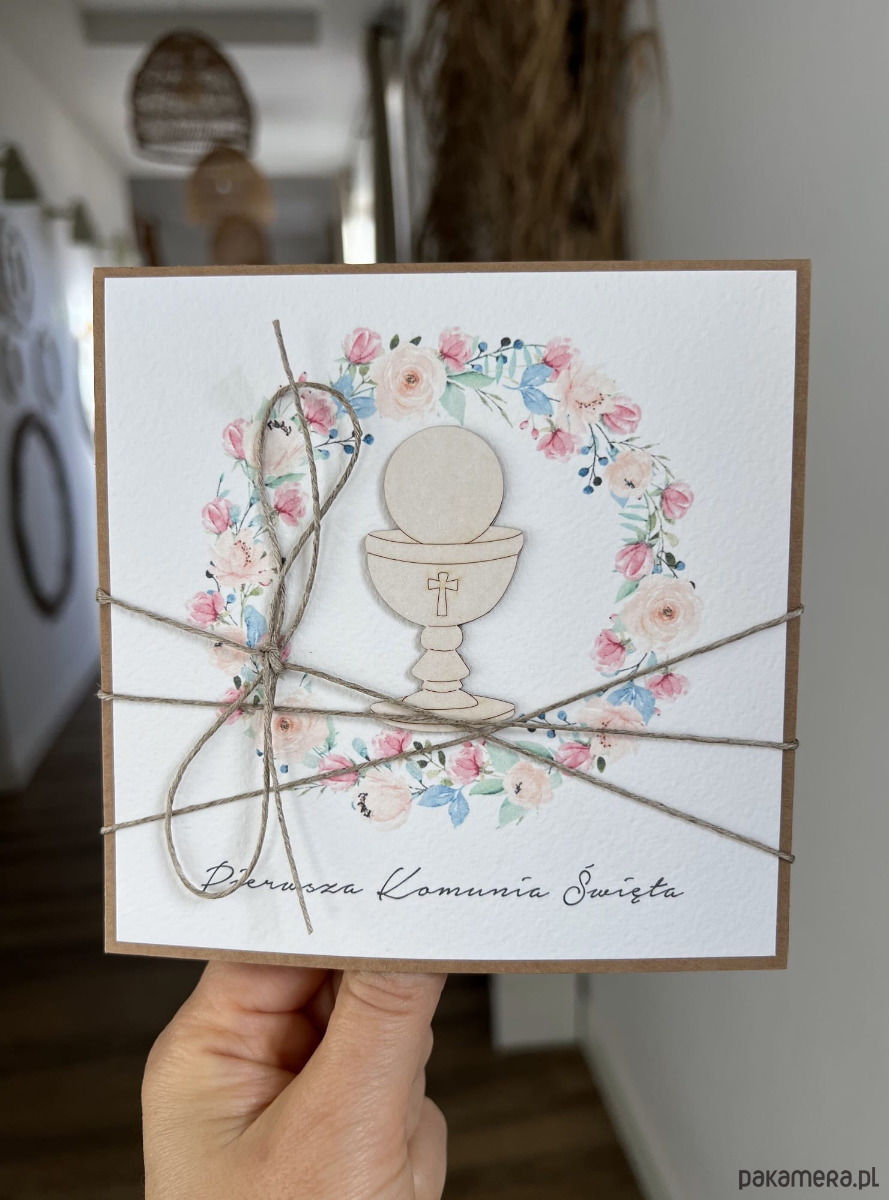 Ręcznie robiona kartka komunijna z życzeniami