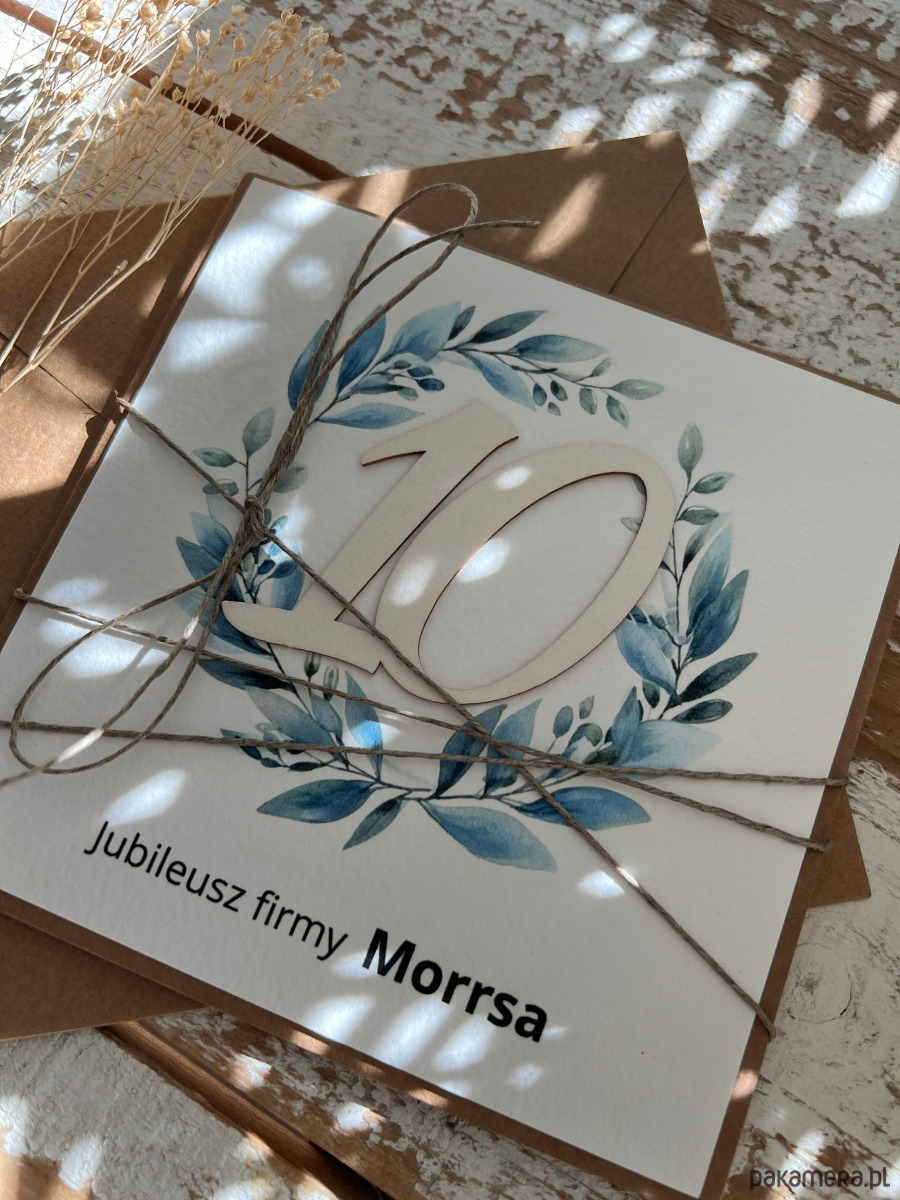 Ręcznie robiona kartka na 10 jubileusz firmy z personalizacją (10-lecie działalności)