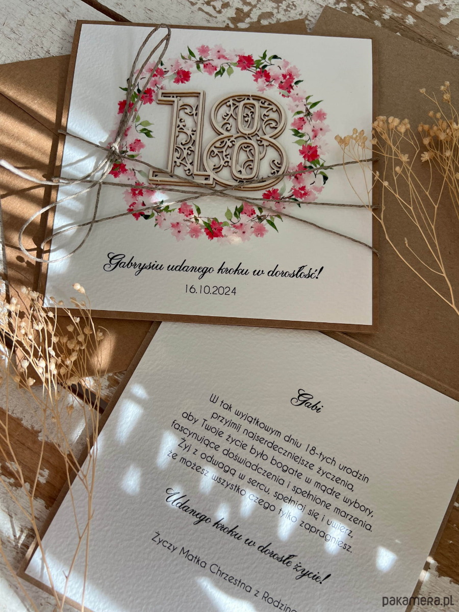 Ręcznie robiona kartka na (18) osiemnaste urodziny, prezent życzenia od matki