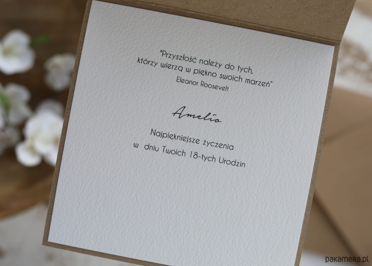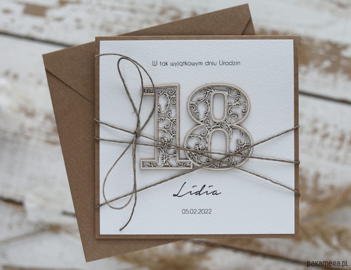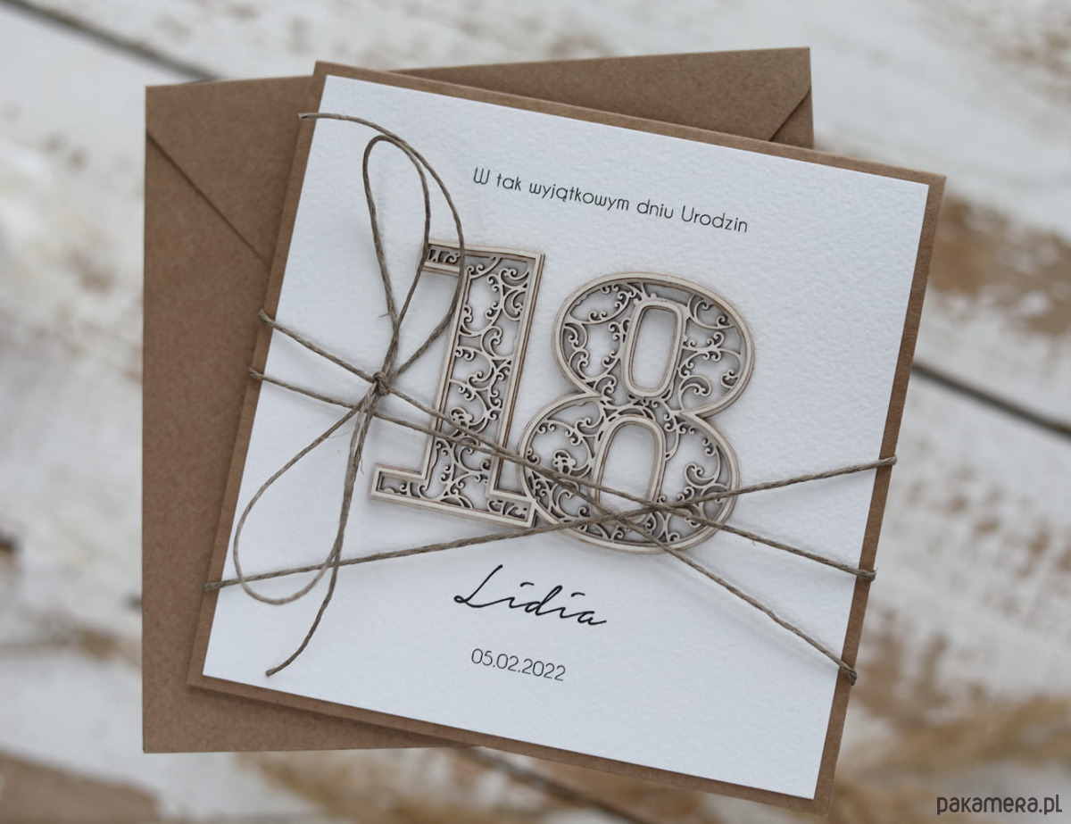 Ręcznie robiona kartka na 18 urodziny z personalizacją
