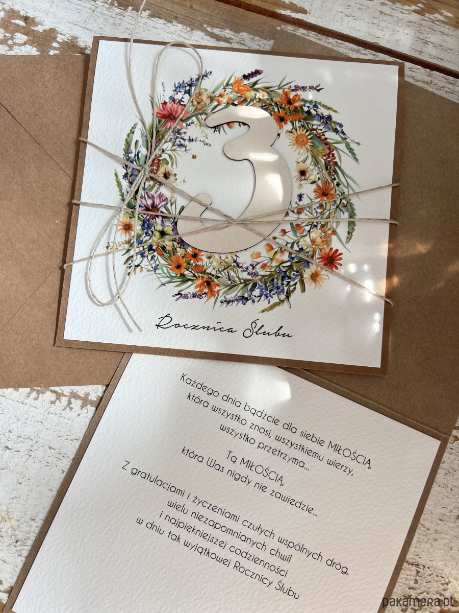 Ręcznie robiona kartka na 3 rocznicę ślubu - trzecia rocznica ślubu