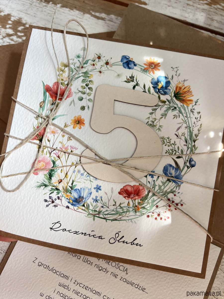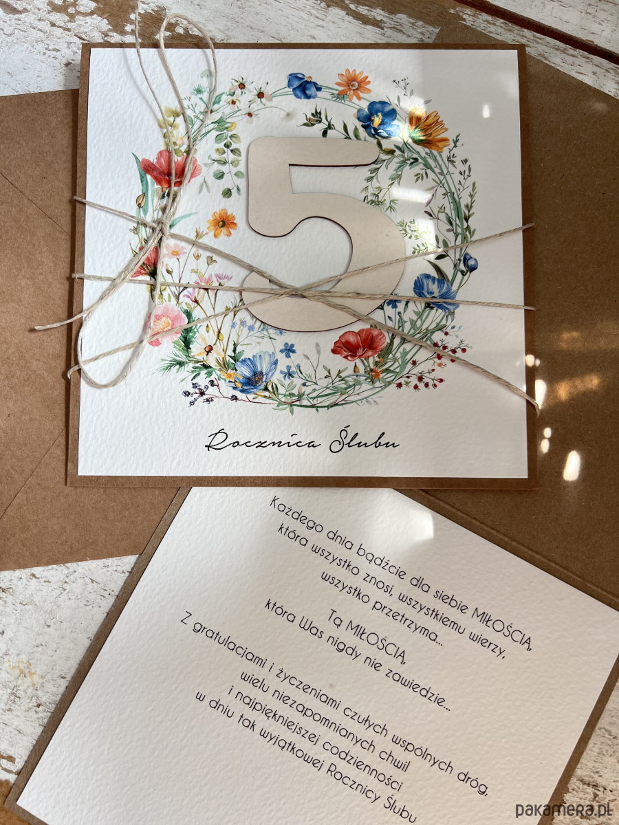 Ręcznie robiona kartka na 5 rocznicę ślubu - piąta rocznica ślubu