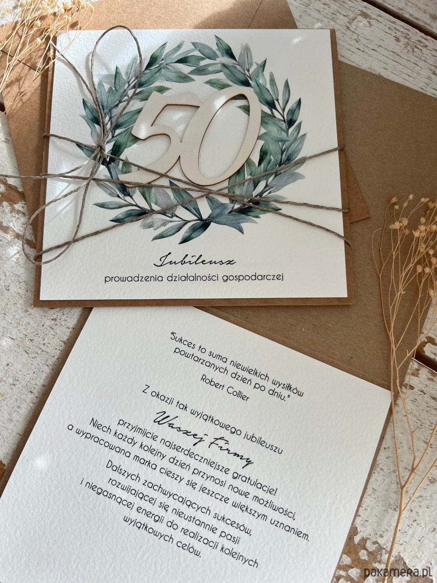 Ręcznie robiona kartka na 50 jubileusz firmy (50-lecie działalności)