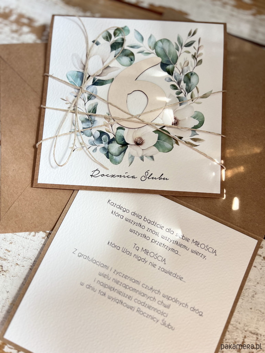 Ręcznie robiona kartka na 6 rocznicę ślubu - szósta rocznica ślubu