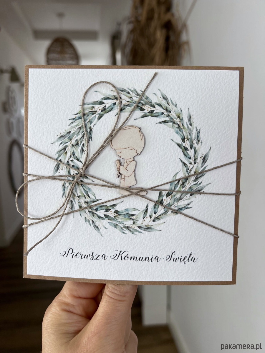 Ręcznie robiona kartka na komunię z życzeniami dla chłopca