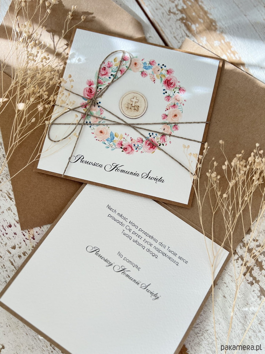 Ręcznie robiona kartka na komunię z życzeniami