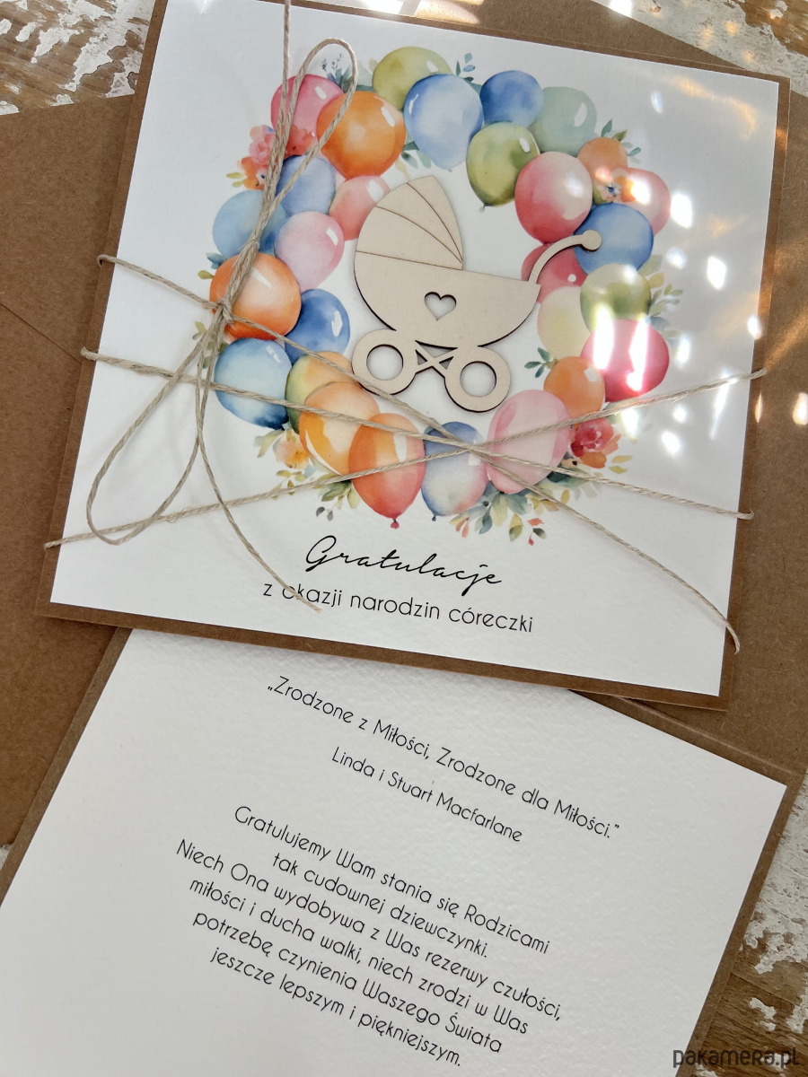 Ręcznie robiona kartka na narodziny córeczki - gratulacje