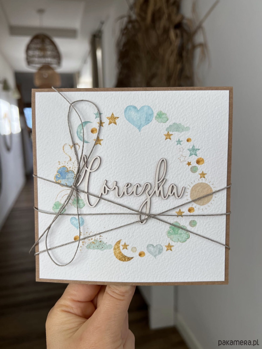 Ręcznie robiona kartka na narodziny dziecka - gratulacje córeczka