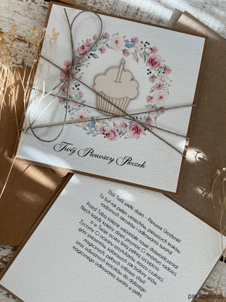 Ręcznie robiona kartka na urodziny dla dziewczynki życzenia urodzinowe dla dziecka - Twój pierwszy roczek