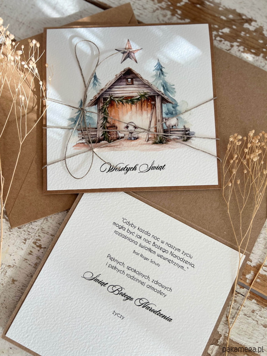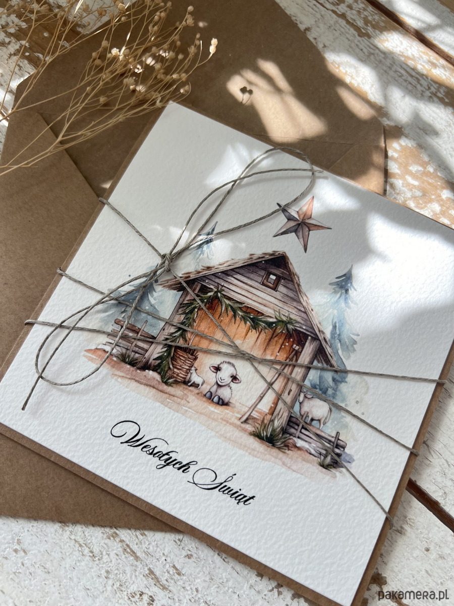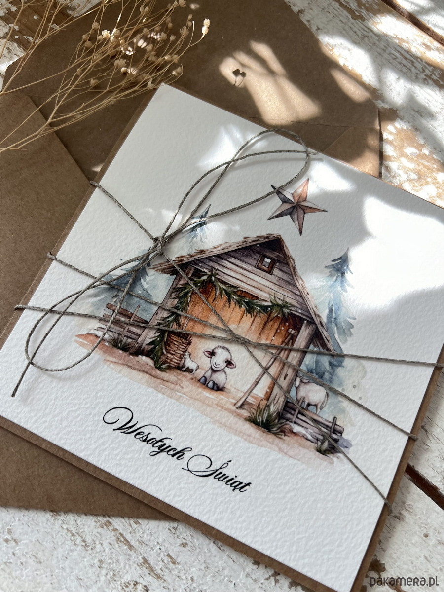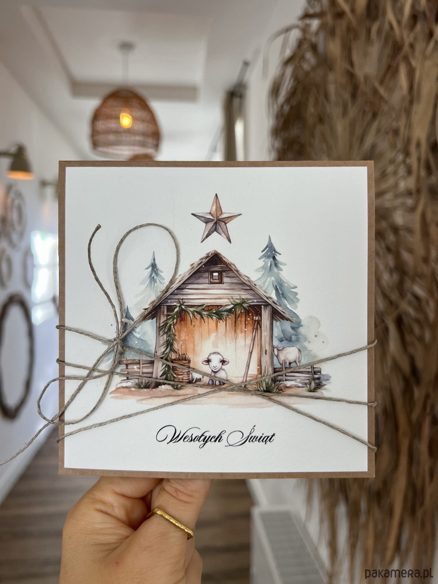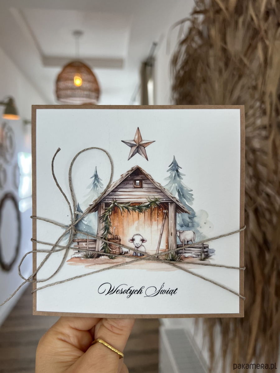 Ręcznie robiona kartka świąteczna na Boże Narodzenie, bożonarodzeniowa + piękne życzenia świąteczne