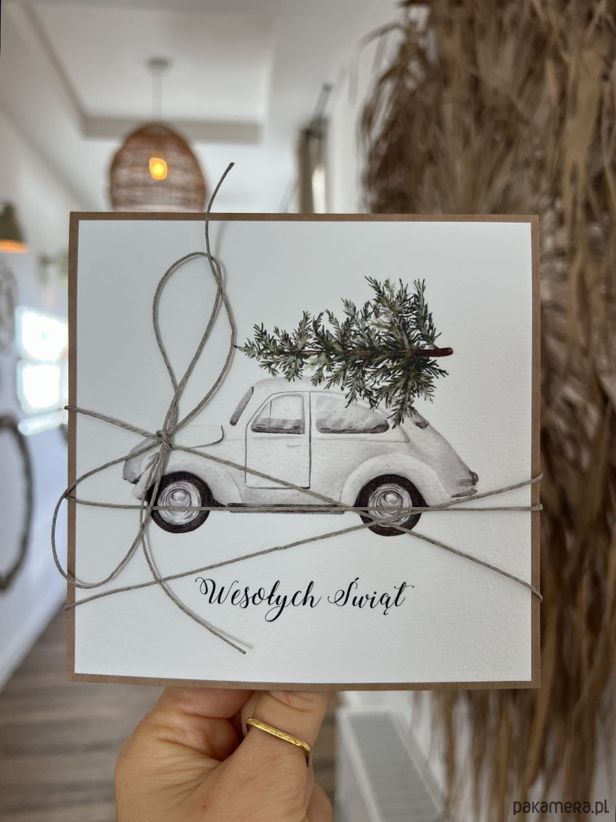 Ręcznie robiona kartka świąteczna na Boże Narodzenie, bożonarodzeniowa + piękne życzenia świąteczne
