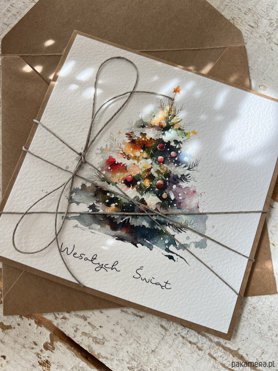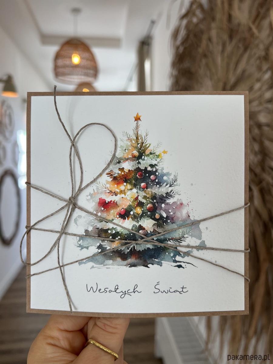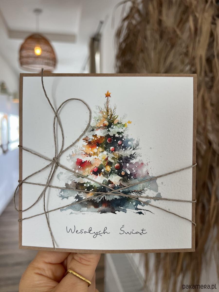 Ręcznie robiona kartka świąteczna na Boże Narodzenie, bożonarodzeniowa + piękne życzenia świąteczne