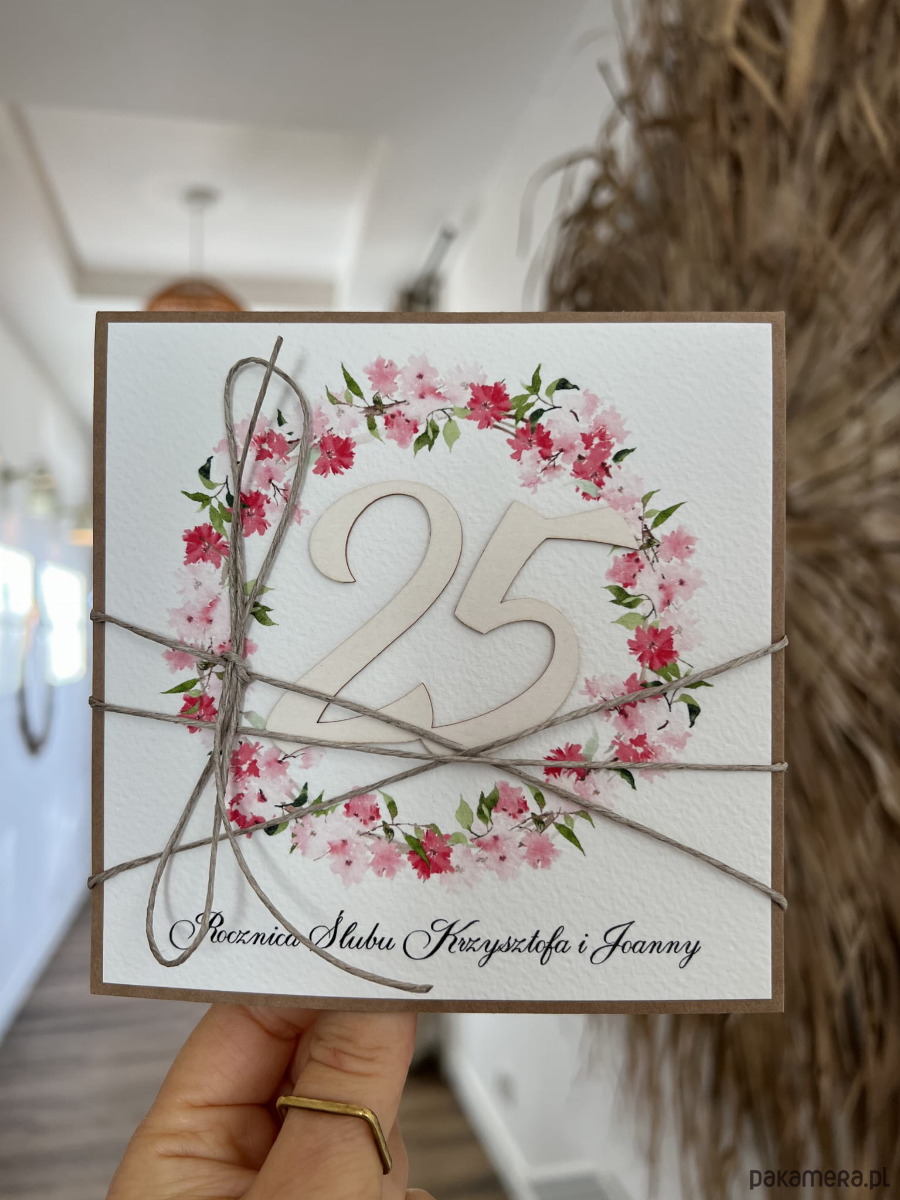 Ręcznie robiona kartka z okazji 25. rocznicy ślubu - personalizowany prezent na rocznicę ślubu + piękne życzenia rocznicowe