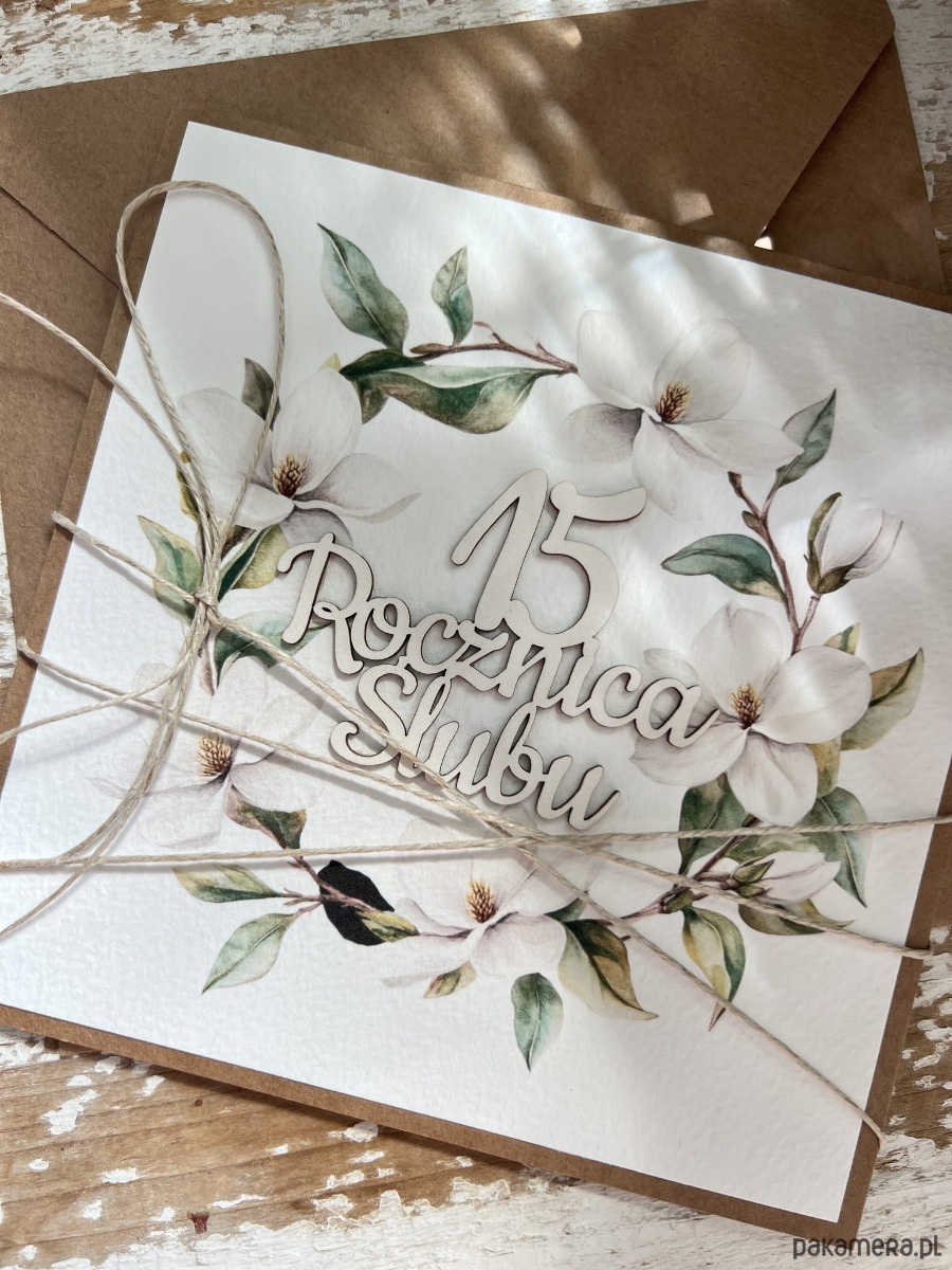 Ręcznie robiona kartka życzenia z okazji 15 rocznicy ślubu