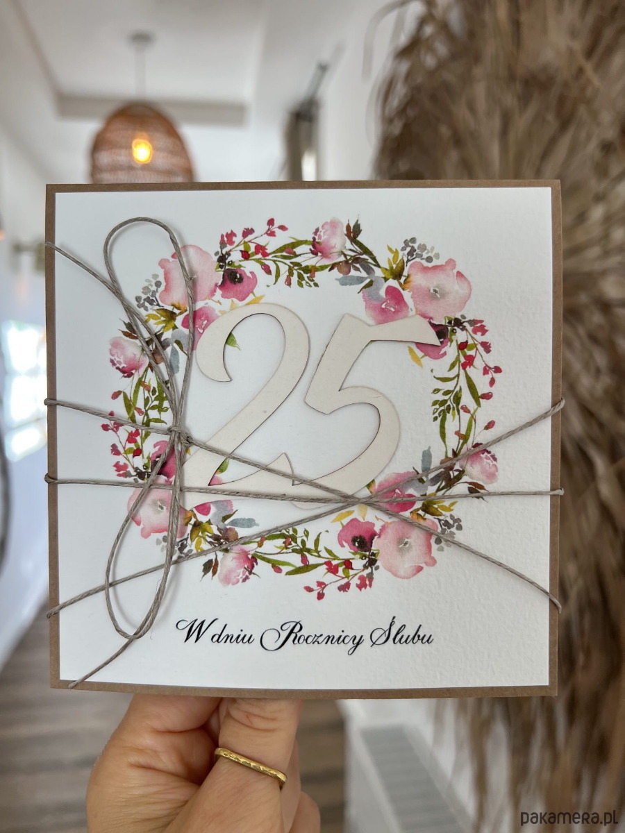 Ręcznie robiona kartka życzenia z okazji 25. rocznicy ślubu