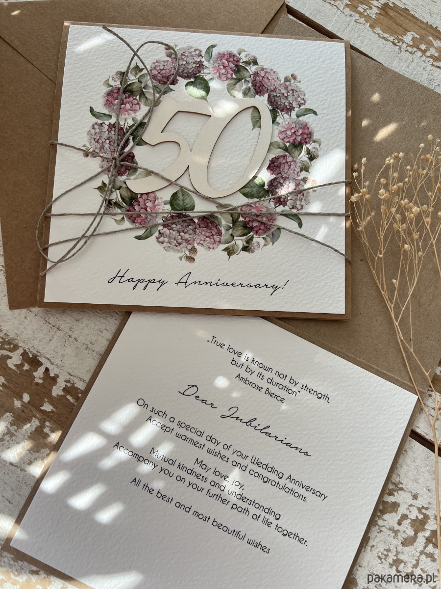 Ręcznie robiona kartka z okazji 50. rocznicy ślubu - rocznica ślubu - prezent na rocznicę ślubu