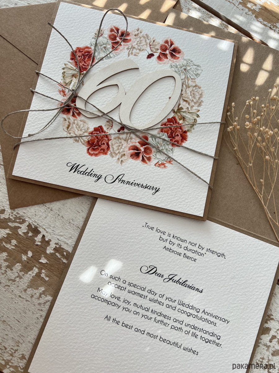 Ręcznie robiona kartka z okazji 60. rocznicy ślubu - rocznica ślubu - prezent na rocznicę ślubu