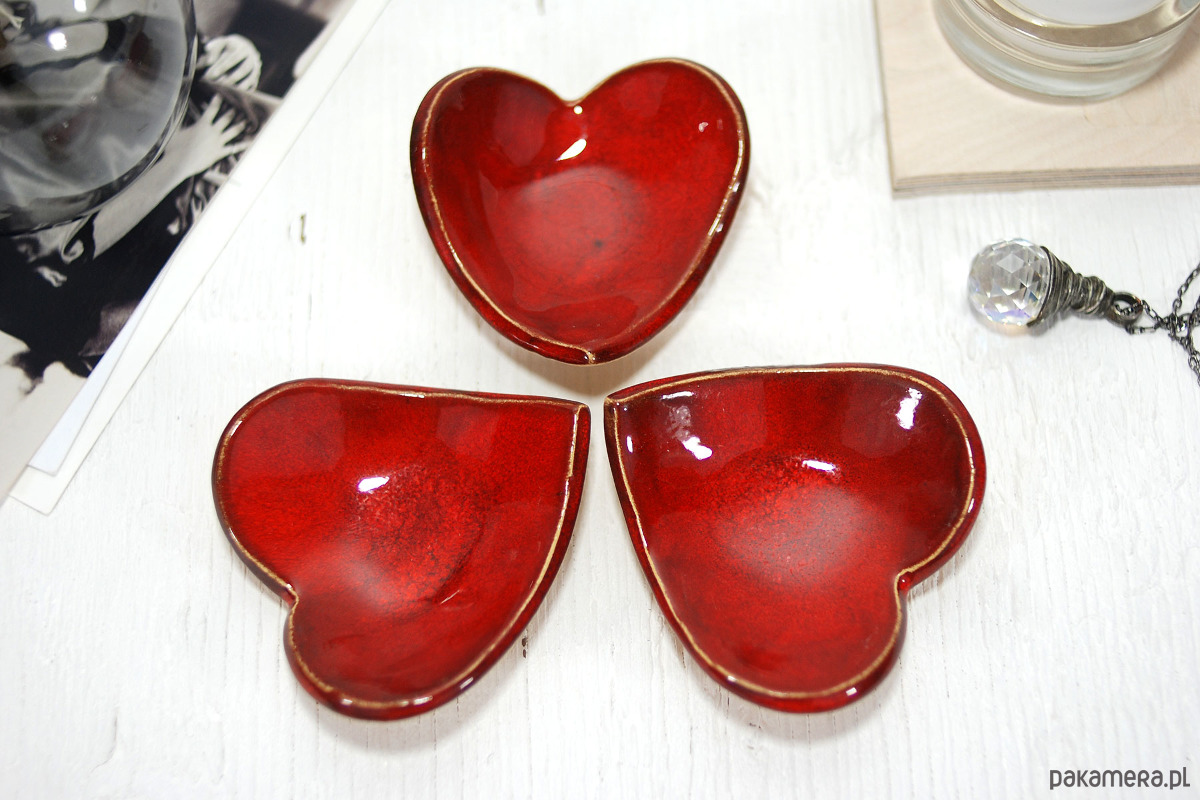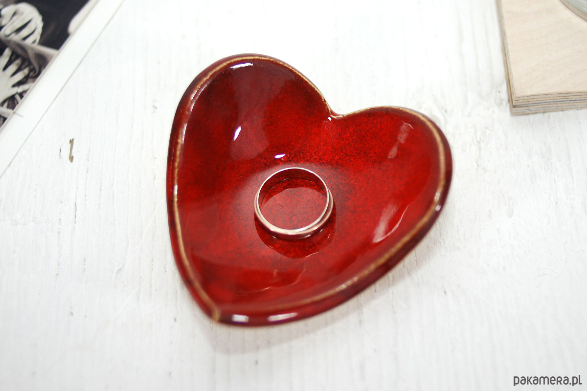 Ręcznie robiona miseczka w kształcie serca to uniwersalny i elegancki drobiazg, który idealnie sprawdzi się jako podstawka na pierścionki, kolczyki lubinne drobiazgi. Ze względu na swój kształt i głęboki kolor, stanowi doskonały wybór na talerzyk na obrączki podczas ceremonii ślubnej lub romantyczny prezent na Walentynki, rocznicę i Dzień Mamy.