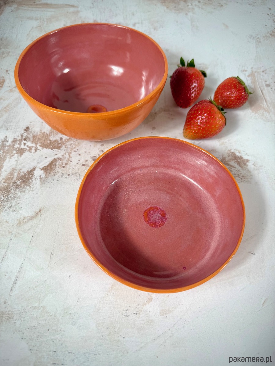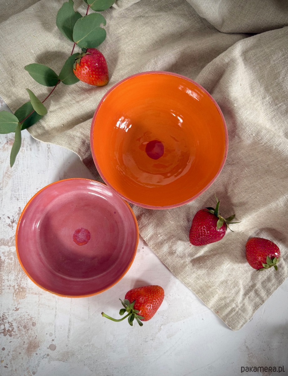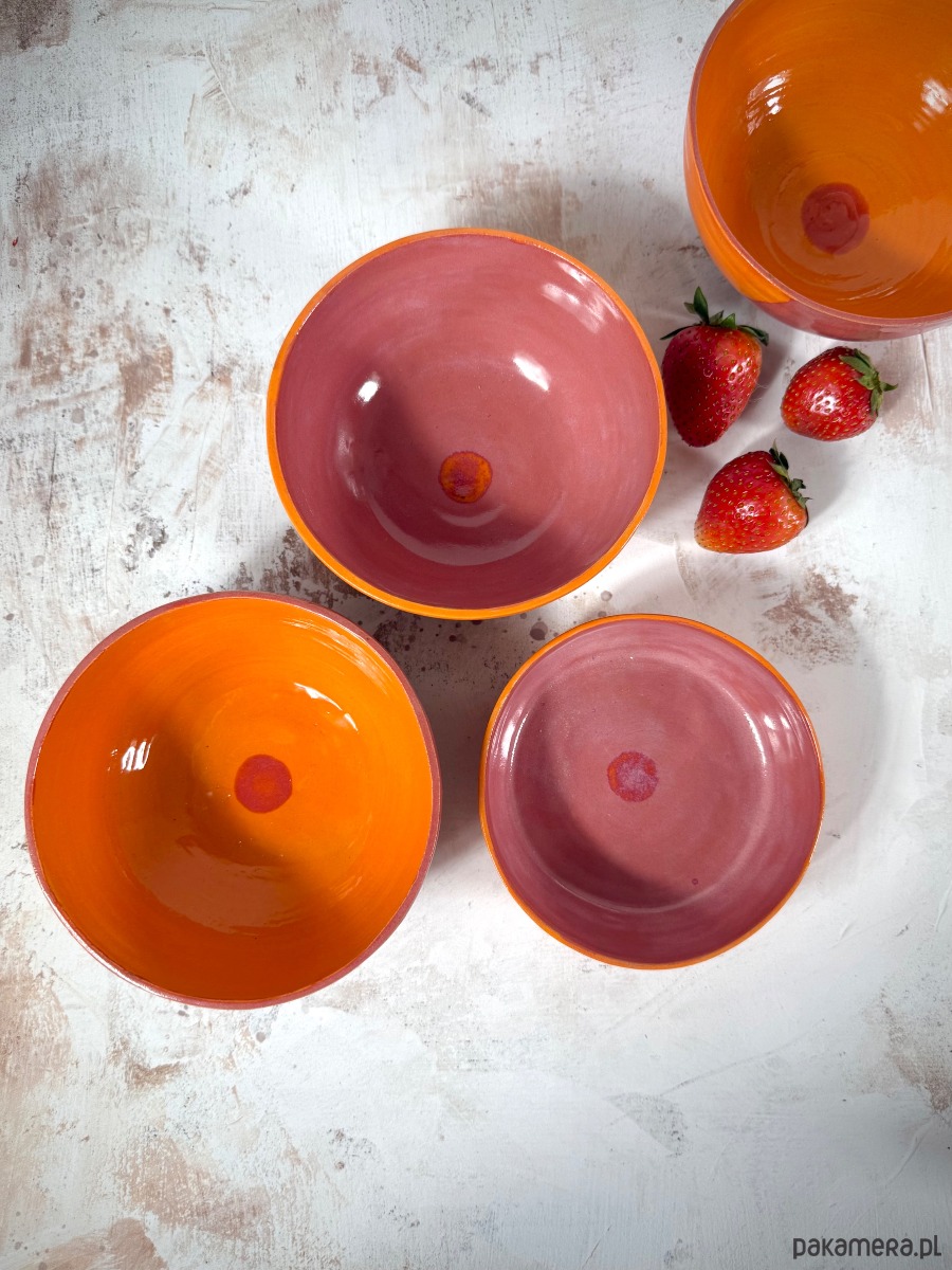 • wykończenie: szkliwo – pomarańcz (zewnątrz), truskawkowy róż (wnętrze)