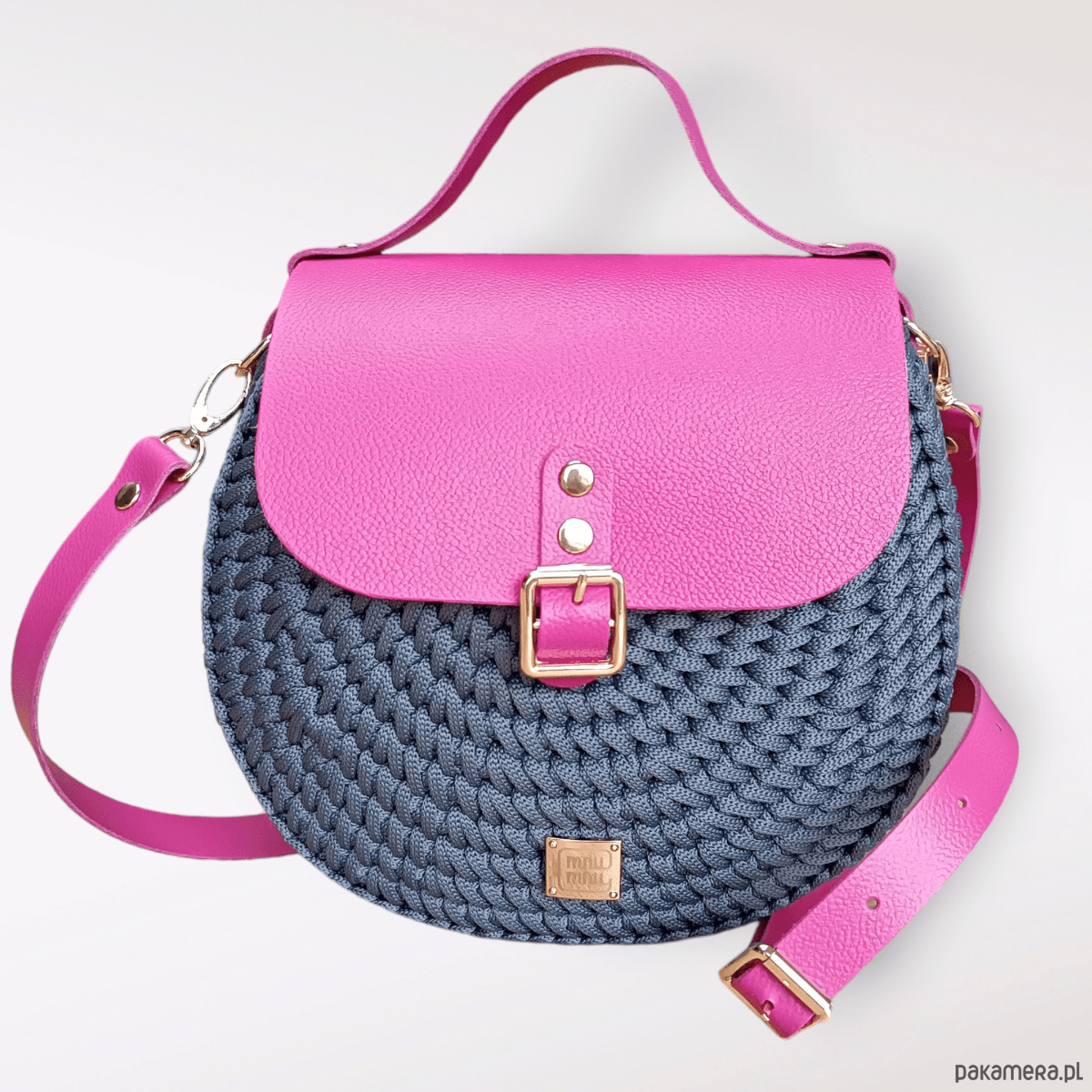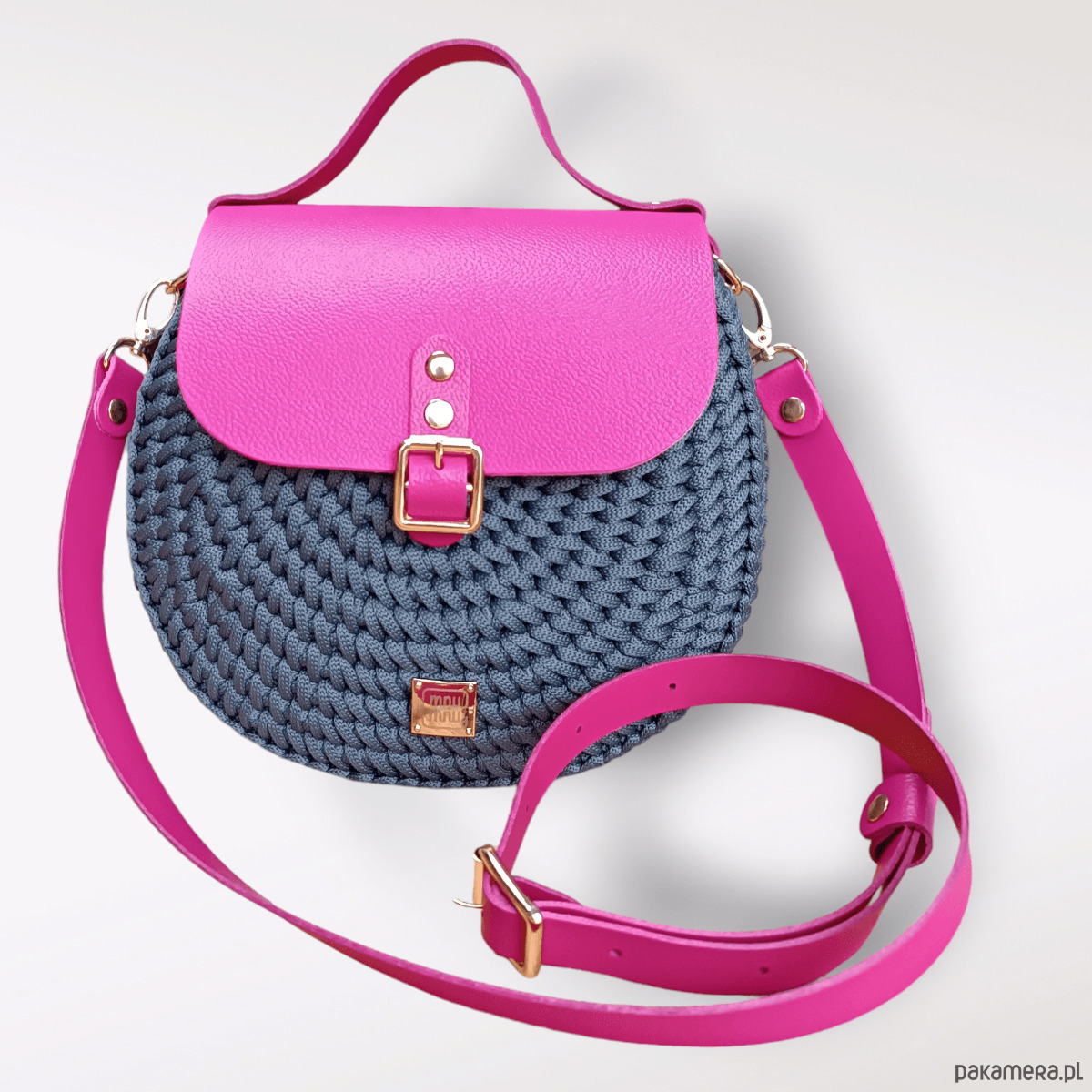 ✅ Skórzana klapa torebki w kolorze fuksji zamykana na magnes wraz z rączką do trzymania torebki